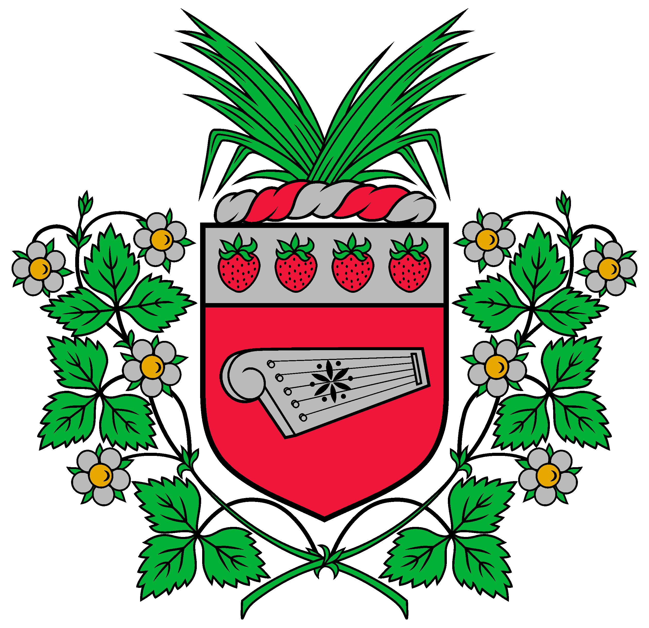 Sējānu dzimtas ģerbonis (Sarkanā laukā sudraba kokle sijas virzienā. Sudraba galvā četras sarkanas zemenes ar zaļām kauslapām. Vairogs pārsegts ar sudraba – sarkanu grīsti, kleinodā apvērsta ševrona veidā divi izaugoši zaļu kalmju pušķi, kas lejā krustojas, labais uz kreiso. Vairogs sānos apņemts ar divām zaļām zemeņu stīgām, kuras krustojas zem vairoga, starp stīgu lapām – sudraba pieclapu ziedi ar zelta auglenīcu un zaļām kauslapām.)