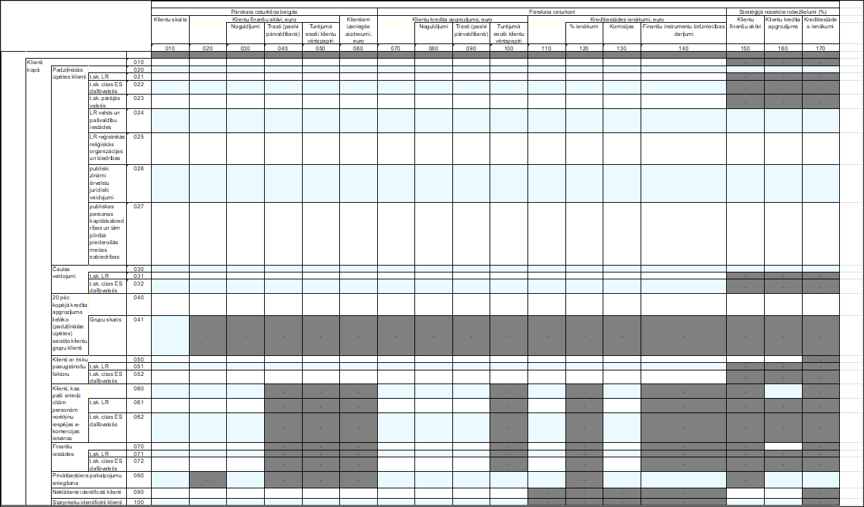 49.1. kolonnā Nr. 10 ar nosaukumu "Klientu skaits" norāda to pārējo klientu (čaulas veidojumu) skaitu, attiecībā uz kuriem kredītiestāde pieņēmusi lēmumu izbeigt darījuma attiecības;