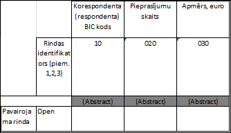 35. Kredītiestāde aizpilda 2. pielikuma rindu, nepieciešamības gadījumā to pavairojot un numurējot pēc kārtas katras rindas sākuma kolonnā, un kolonnās norāda šādus datus par kredītiestādes loro korespondentu (respondentu):