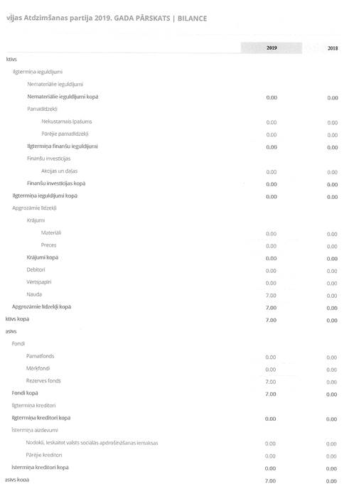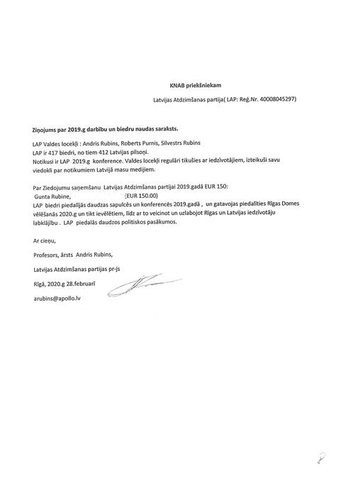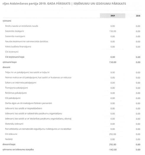 Politiskās partijas "Latvijas Atdzimšanas partija", reģ. Nr. 40008045297, gada pārskats par 2019.gadu