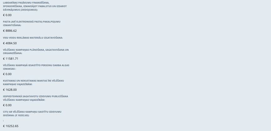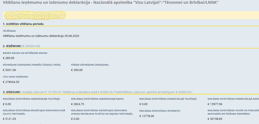 Politiskās partijas "Nacionālā apvienība "Visu Latvijai!" - "Tēvzemei un Brīvībai/LNNK"", reģ. Nr. 40008220045, vēlēšanu ieņēmumu un izdevumu deklarācija