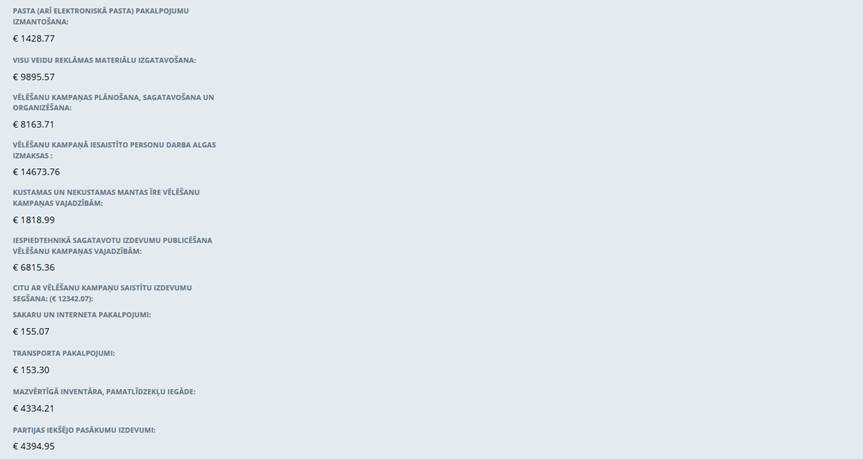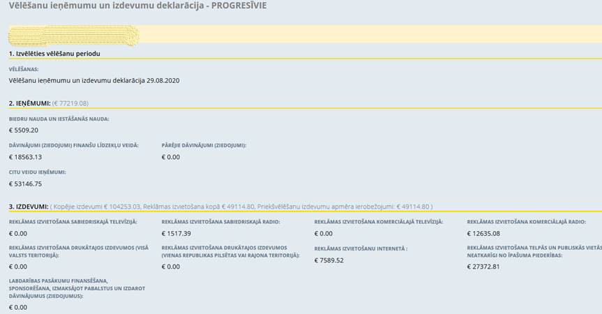 Politiskās partijas "PROGRESĪVIE", reģ. Nr. 40008262104, vēlēšanu ieņēmumu un izdevumu deklarācija
