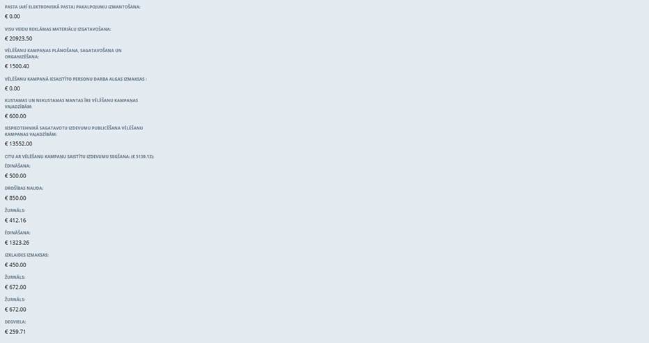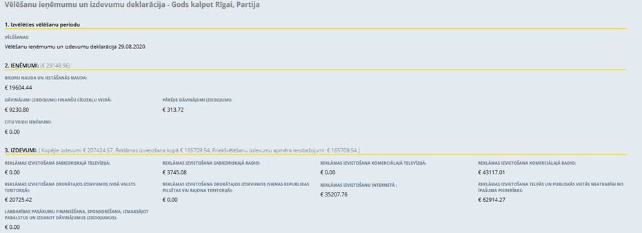 Politiskās partijas "Gods kalpot Rīgai", reģ. Nr. 40008193917, vēlēšanu ieņēmumu un izdevumu deklarācija