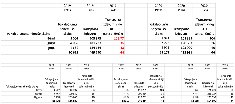 22 Plānoto klientu dienu, klientu skaita neizpildes, kā arī klientu ilgstošas prombūtnes rezultātā tādos sociālās rehabilitācijas pakalpojumos kā, piem. "Ilgstoša sociālās aprūpes un sociālās rehabilitācijas pakalpojumu sniegšana pilngadīgām personām ar garīga rakstura traucējumiem", "Sociālās aprūpes pakalpojumu sniegšana Dienas centros personām ar garīga rakstura traucējumiem" u.c. pakalpojumos.