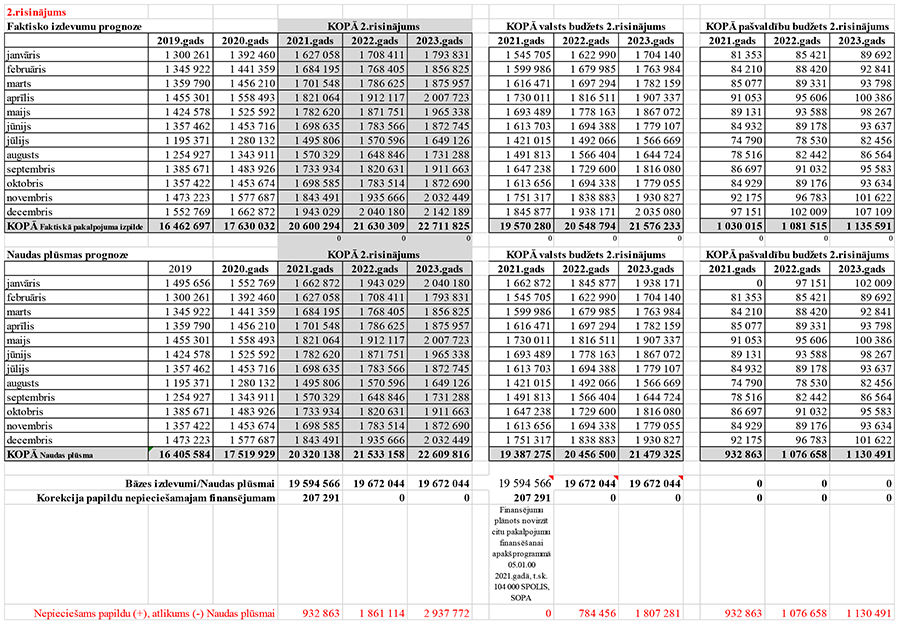21 Atbilstoši aprēķiniem 2021.gadā nepieciešami papildus, salīdzinoši neliels finansējuma apjoms, 25 772 euro. Trūkstošo finansējums 2021.gadā tiks nodrošināts apakšprogrammā 05.01.00. "Sociālās rehabilitācijas valsts programmas" pieejamo budžeta līdzekļu ietvaros no sociālās rehabilitācijas pakalpojumu plānoto valsts budžeta līdzekļu prognozējās neizpildes