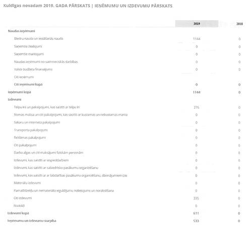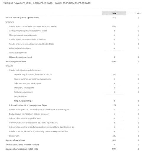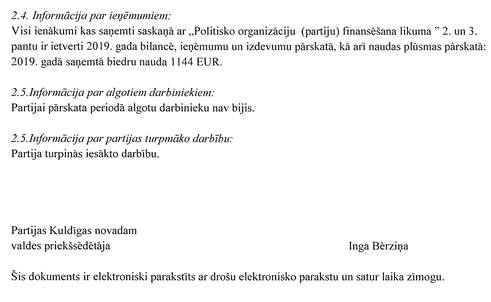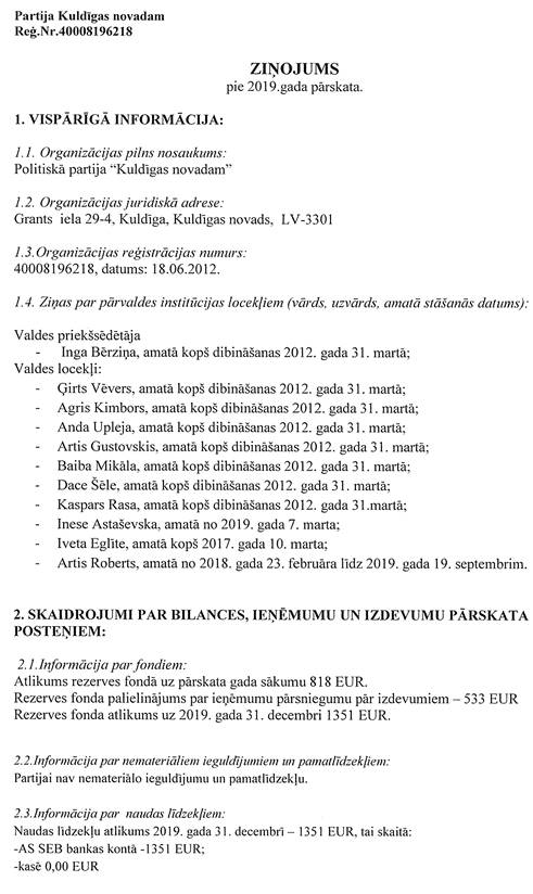 Politiskās partijas "Kuldīgas novadam", reģ. Nr. 40008196218, gada pārskats par 2019. gadu