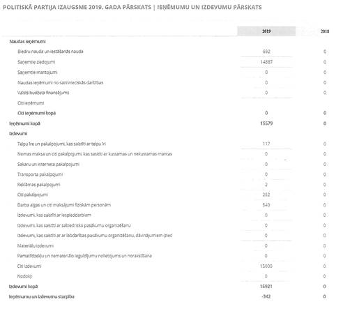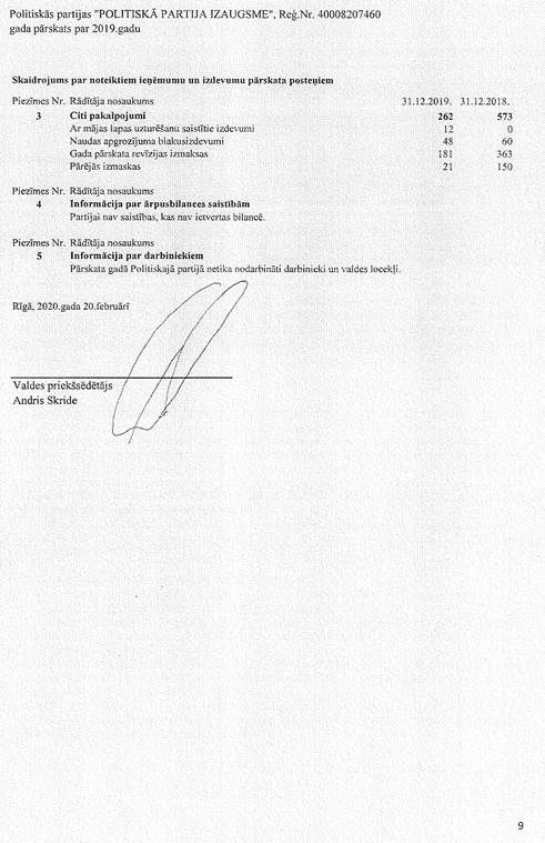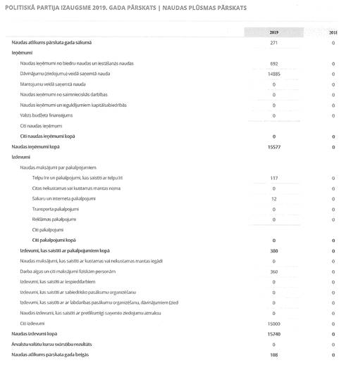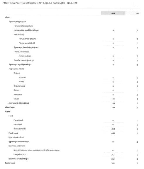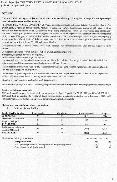 Politiskās partijas "POLITISKĀ PARTIJA IZAUGSME", reģ. Nr. 40008207460, gada pārskats par 2019. gadu