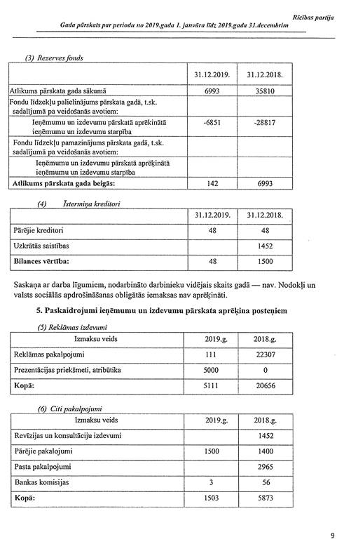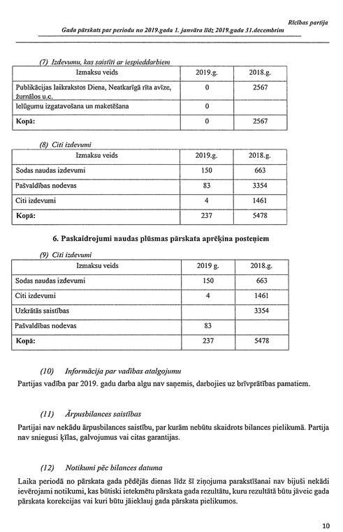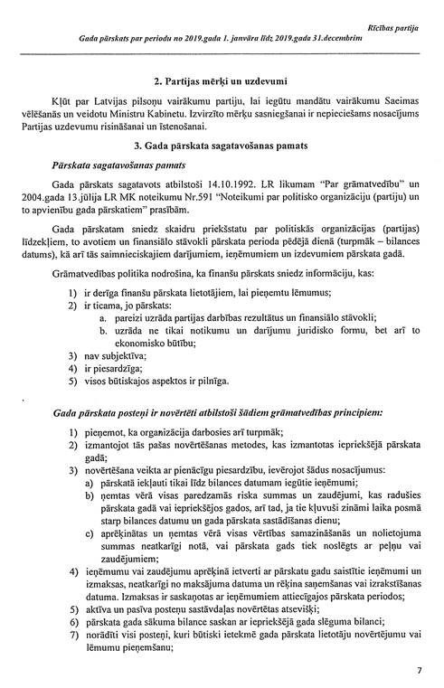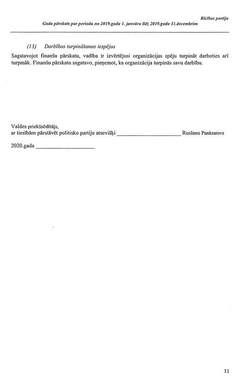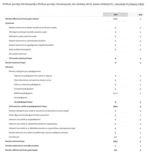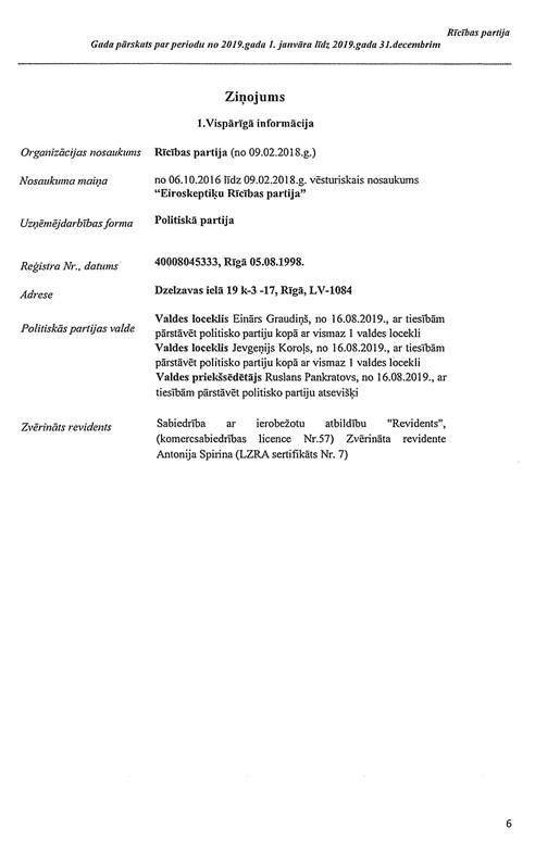 Politiskās partijas "Rīcības partija", reģ. Nr. 40008045333, gada pārskats par 2019. gadu