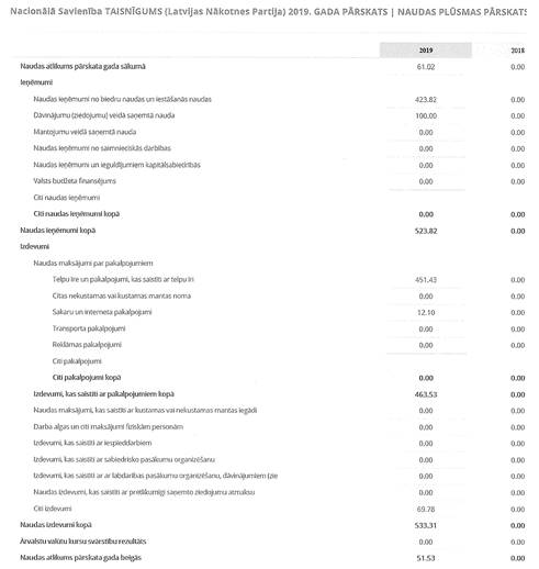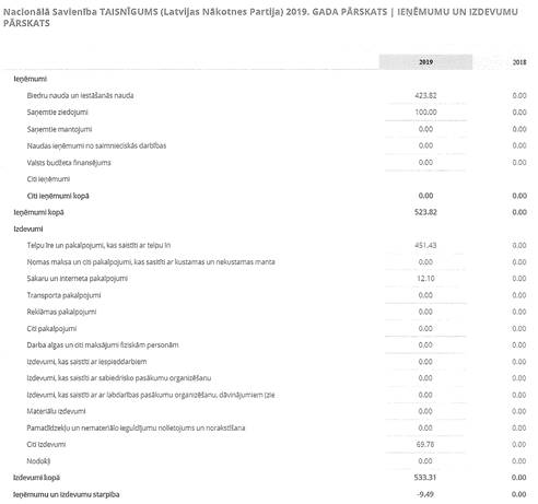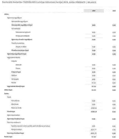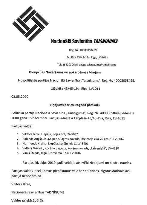 Politiskās partijas Nacionālā savienība "TAISNĪGUMS", reģ. Nr. 40008058499, gada pārskats par 2019. gadu