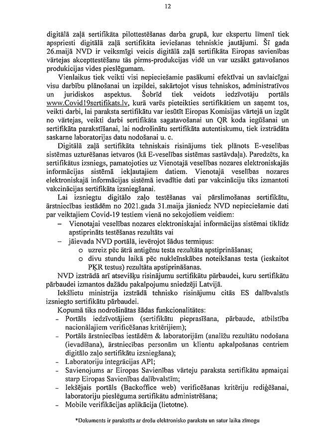 Labdien, Saeimas priekšsēdētājas biedres kundze! Labdien, kolēģi! Eiropas valstis ir vienojušās izveidot sertifikātu, ar kuru varēs verificēt, ka sertifikāta turētājs ir vakcinēts pret Covid-19 vai ir testēts un ir ar negatīvu testa rezultātu, vai ir pārslimojis Covid-19 un saglabājis imunitāti.
