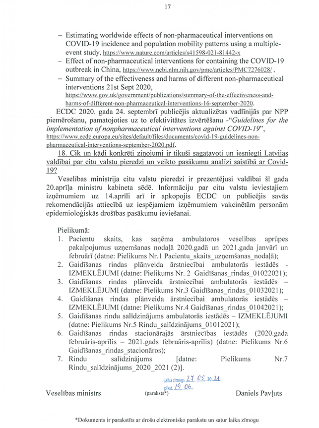 Uzskatāms piemērs, jūs atceraties, tieši tāds pats, analoģisks, stāsts bija kovida sakarā ar šiem preču ierobežojumiem. Parādījās preču ierobežojumi, un tikai pēc tam, kad mēs sagatavojām pieprasījumu Krišjānim Kariņam skaidrot pamatojumu, kāpēc jūs piedāvājat konkrēti šādus ierobežojumus, pieminot konkrētus piemērus, Krišjānim Kariņam pēkšņi nāca atklāsme, ka viņi savus lēmumus pieņem bez atbilstoša pamatojuma, ka viņiem vispār nav pamatojuma tam, ko viņi lemj. Un, kad sāka meklēt pamatojumu, izrādījās, ka šādi lēmumi vispār nav pamatoti un tie vispār nebūtu jāpieņem, tie ir jāmaina. Tādējādi mēs panācām to, ka šie preču ierobežojumi diezgan ātrā laikā tika atcelti, bet līdz tam brīdim valdība neko tādu nebija domājusi vispār darīt. Viņi pat nesaprata, kādu stulbumu, kādu absurdu viņi ir pieņēmuši.
