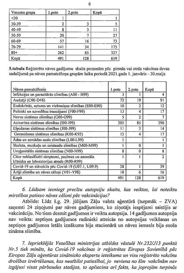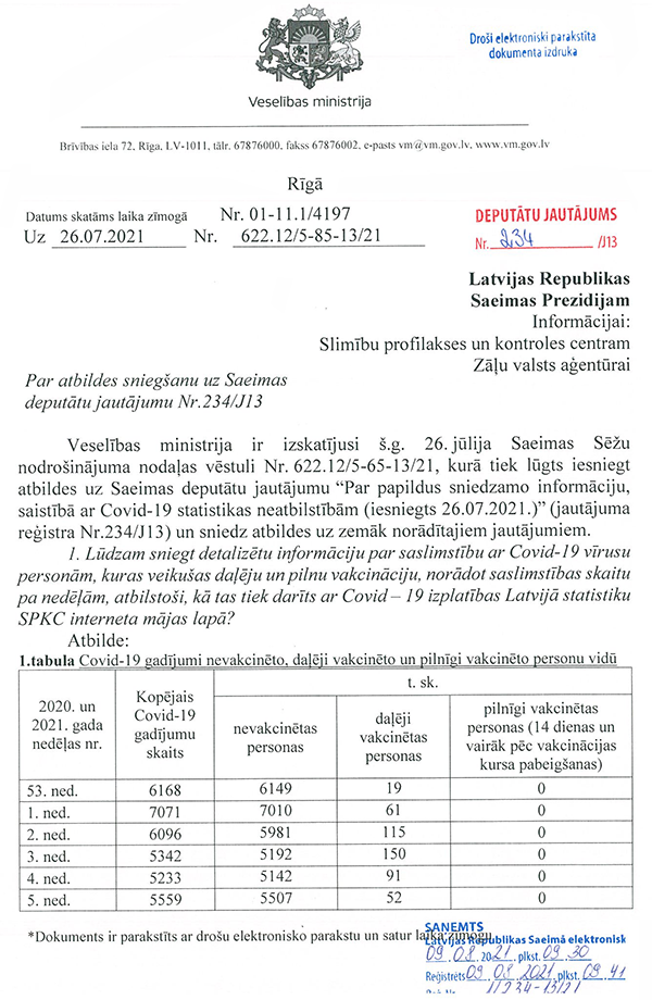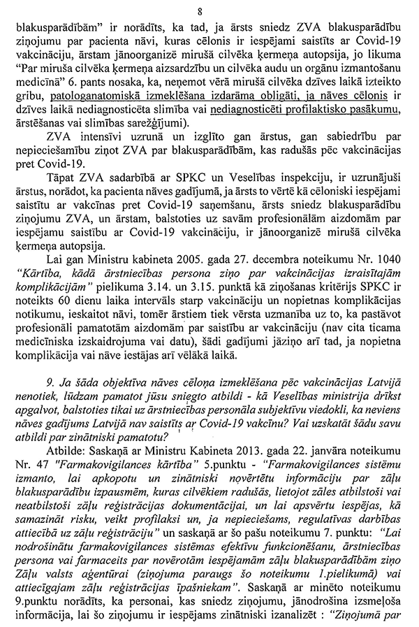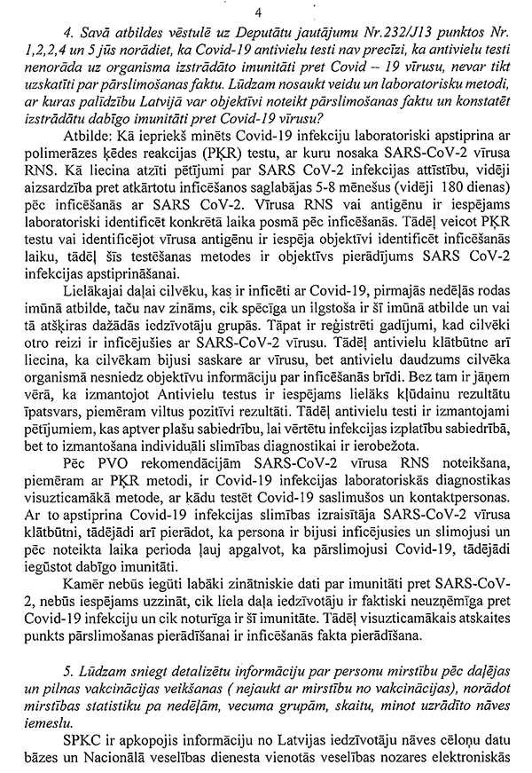 Es domāju, ka šeit ir pilnīgi skaidri uzrakstīti argumenti, kurus mēs varam pieminēt arī tagad. Bet vienīgais arguments, ko mēs šodien dzirdējām no Citskovska kunga, – ka viss šis pētījums vairs nav derīgs, viss šis informatīvais ziņojums vairs nav derīgs, jo tas tika sastādīts laikā, kad vakcīnas nebija pieejamas visām grupām. Viņš ļoti skaisti noignorēja visus šos argumentus, kuri joprojām ir spēkā un kuri ir ļoti aktuāli, jo Satversmes 93. pants, ceru, nekur nav pazudis. Taču mēs redzam kārtējos melus, tālāk – manipulāciju.