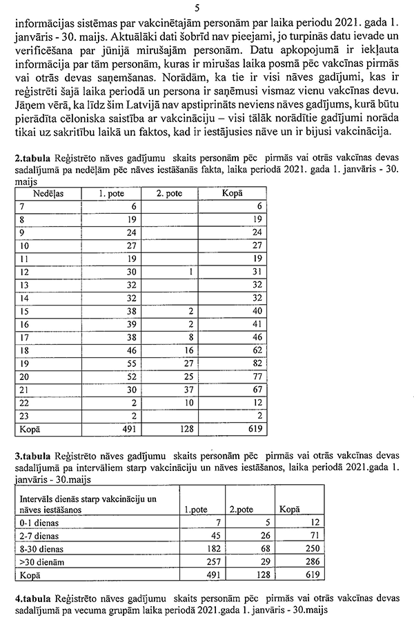 Tas nozīmē, ka blakņu risku ļoti labi apzinājās Tieslietu ministrija tad, kad tika sastādīts šis informatīvais ziņojums. Tieši šā paša informatīvā ziņojuma ietvarā ir norādīts tas, ka joprojām šī vakcīna tiek pētīta. Un tā tiek pētīta arī tagad, nav lielas atšķirības starp aprīli, tikai mazliet vairāk laika ir pagājis, un varbūt ir vēl dažas blaknes atklātas.