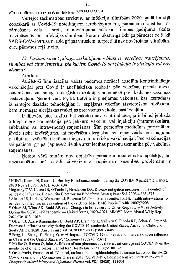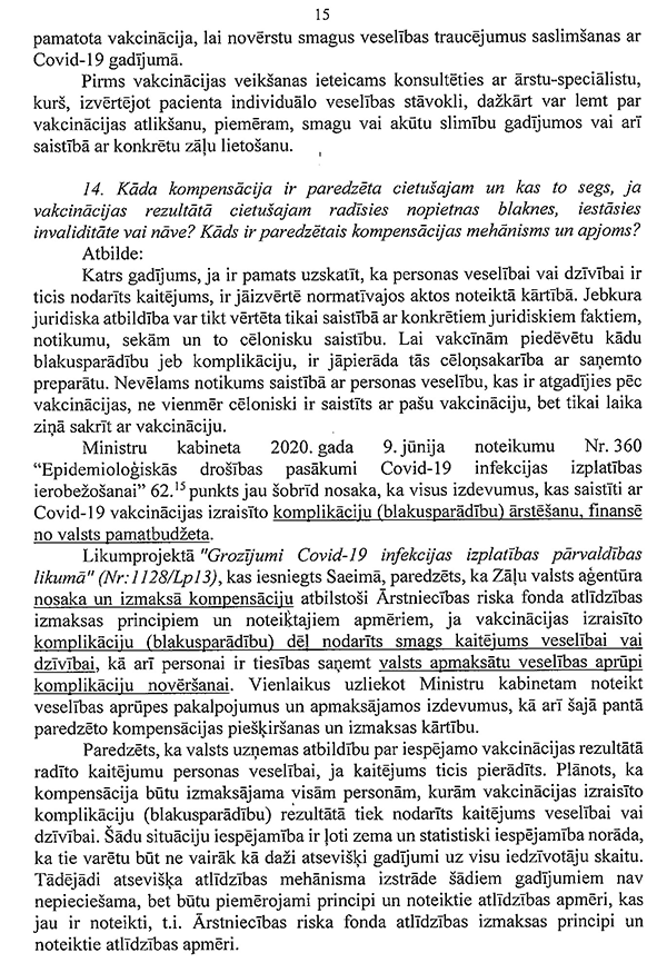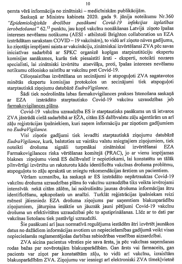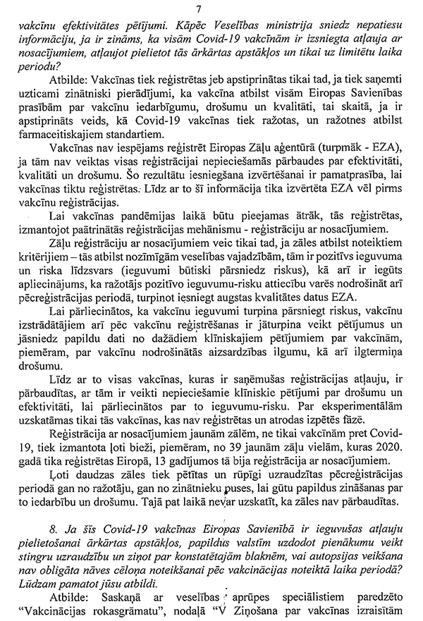 Šajā pašā informatīvajā ziņojumā, par kuru mēs runājam, ir, protams, atsauce uz šo lēmumu, atgādinot to, ka šis lēmums ir tikai un vienīgi par izpētītām vakcīnām, kuras jau ir iekļautas vakcinācijas kalendārā. Un šajā gadījumā tieši kovida aspektā šis lēmums nav skatāms.