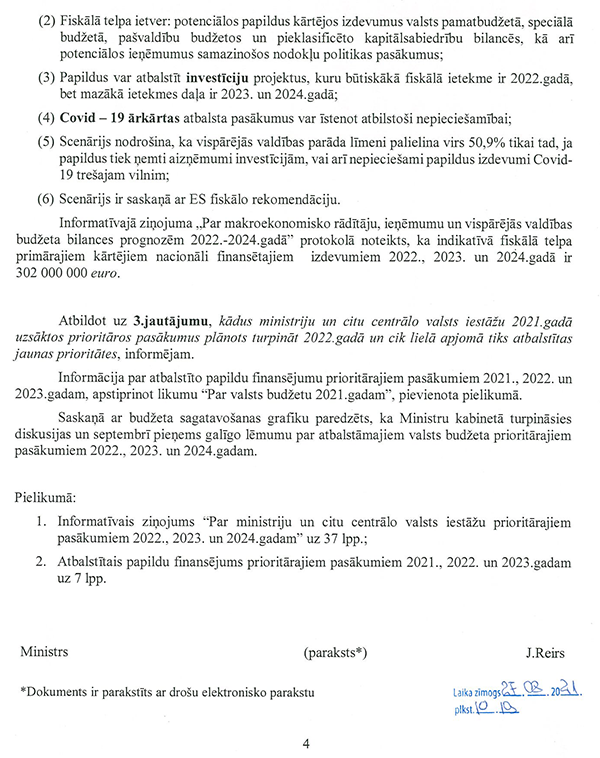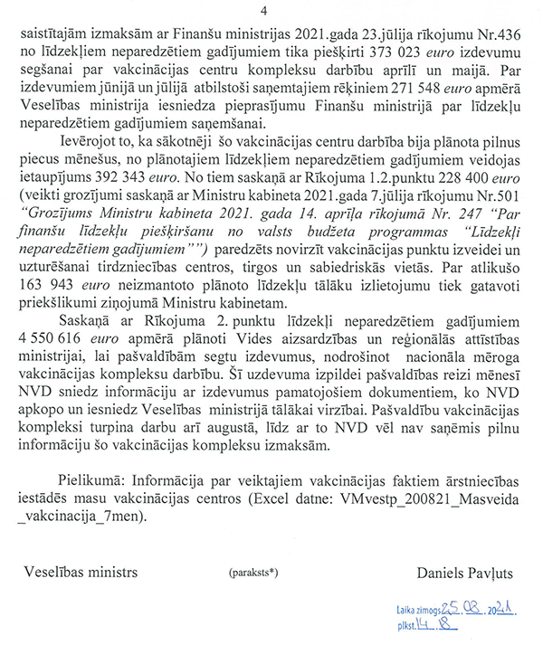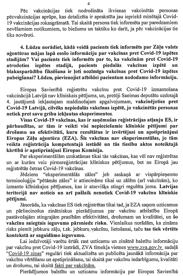 Ceturtkārt, ņemot vērā, ka vakcīnas ir pieejamas un katrs, kurš vēlas, var vakcinēties, turpmāk vairs nebūtu pieņemama tik plaša mēroga tautsaimniecības apturēšana, kādu mēs pieredzējām iepriekšējā ziemā.