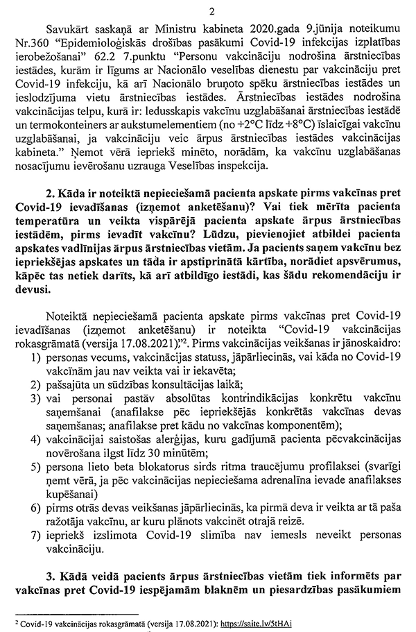 Otrkārt, ir tādi noteikumi, kuri jāpieņem centralizēti, attiecinot uz visu valsti, un ir jomas, kurās priekšroka ir dodama decentralizētai lēmumu pieņemšanai. Ministru kabinetam uz likuma pamata būtu jāpieņem noteikumi par profesijām, kurās nepieciešama vakcinācija (piemēram, sociālajiem un medicīnas darbiniekiem, skolotājiem, noteiktu pakalpojumu sniedzējiem, piemēram, kultūras iestādēs, kafejnīcās un tā tālāk). Bet Ministru kabinetam par to ir jādiskutē un jālemj atsevišķi.