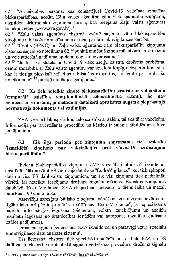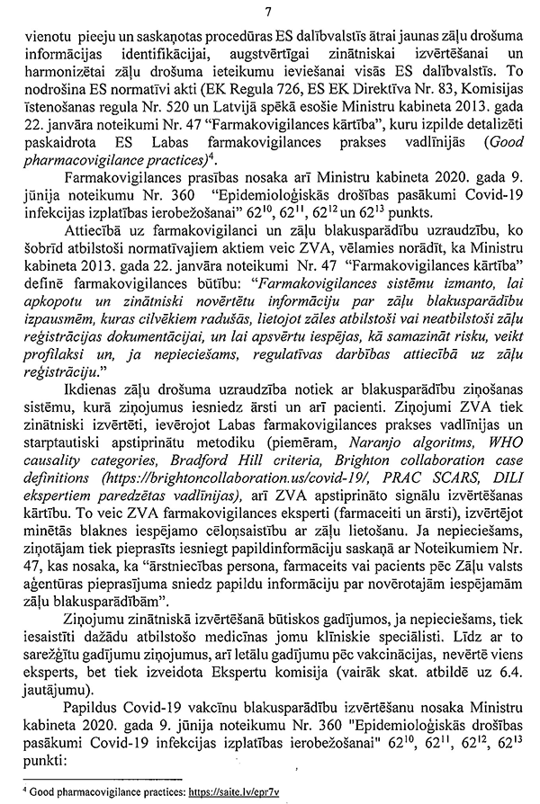 Šāds regulējums atbilst Satversmei, un tas atbilst Eiropas Cilvēktiesību konvencijai, kā to nesen sprieda arī Eiropas Cilvēktiesību tiesa vienā analogā gadījumā. Tas ir tiesisks un samērīgs, jo pienācīgi ņem vērā to cilvēku tiesības un intereses, kuri vakcinējoties ir samazinājuši inficēšanās risku sev un apkārtējiem.