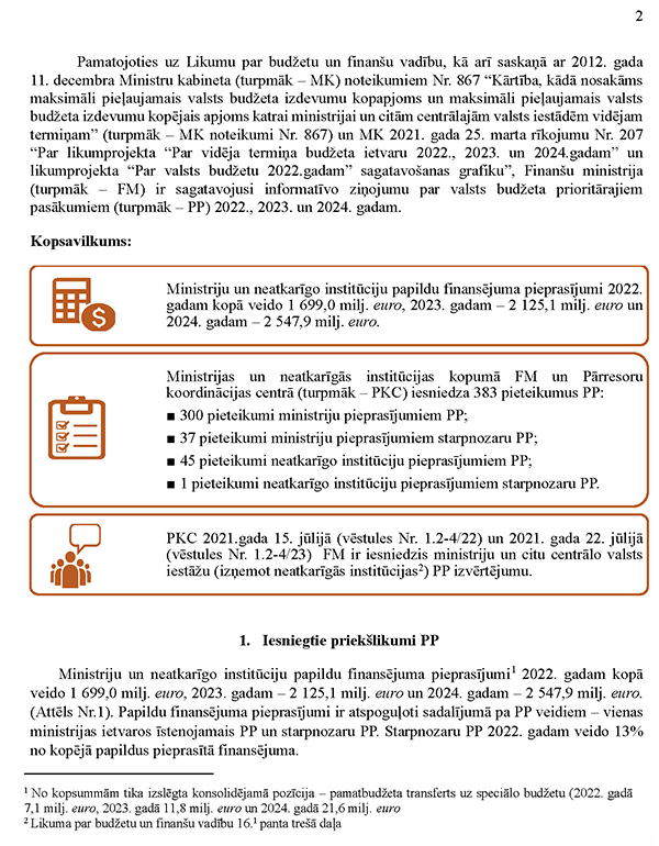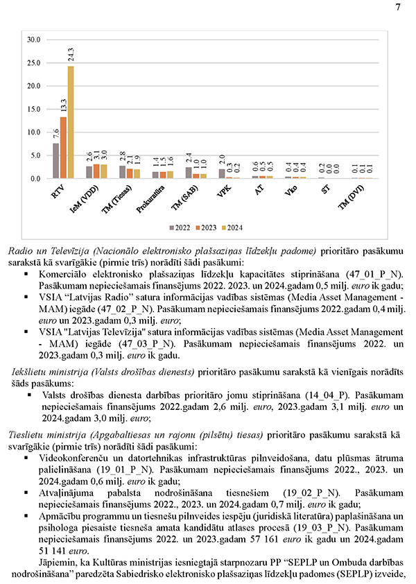| 7. | 22_07_P | Latvijas eksporta, kultūras un publiskās diplomātijas programma Latvijas dalības sagatavošanai viesu valsts statusā Frankfurtes grāmatu tirgū | 952,950 | 1,228,800 | 2,321,650 | 4,286,300 | |||