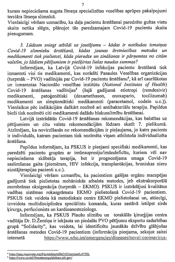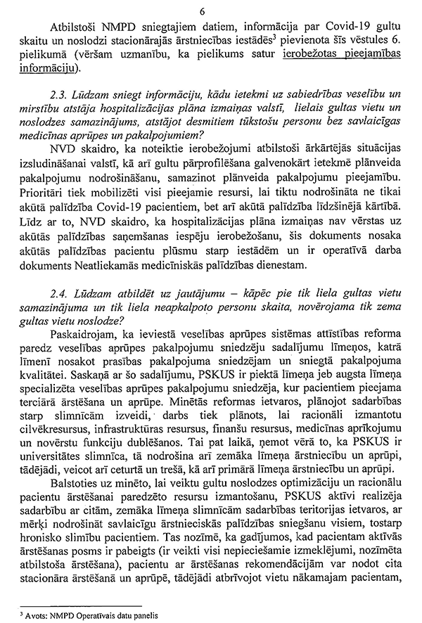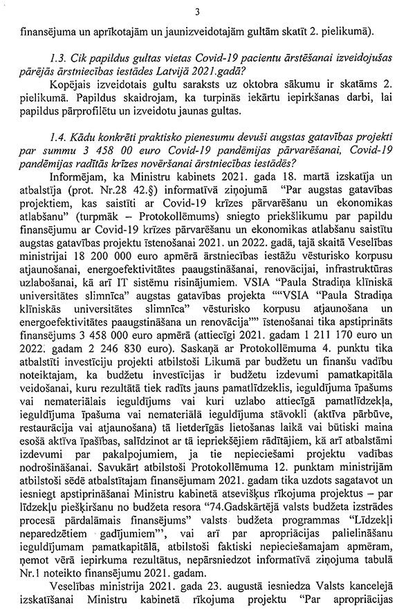 Tagad... Mums ir trīs krīzes tagad – Covid-19, Baltkrievijas robežas un enerģētikas. Un, protams, lai pārvarētu šīs krīzes... Piemēram, lai pārvarētu Covid-19 izraisīto krīzi, kas šobrīd notiek, mēs turpinām ļoti ievērojami ieguldīt līdzekļus mūsu veselības aprūpes sistēmā. Protams, šī nauda vien neizlabos sistēmu, bet ar šo naudu ir vieglāk gādāt labākus pakalpojumus mūsu valsts iedzīvotājiem. Tātad mums šī pandēmija ir jāizmanto, lai mēs ne tikai palielinātu finansējumu veselības aprūpei, bet, protams, arī šo sistēmu daudz labāk sakārtotu, jo daudzējādā ziņā tas vēl līdz galam nav izdarīts, tas vēl ir procesā.