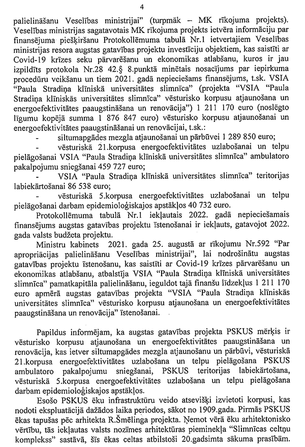 Pirmā no tām ir Linezera slimnīca. Jūs varat aizbraukt apskatīties – tie, kas Rīgas tuvumā dzīvo –, kā tur izskatās.