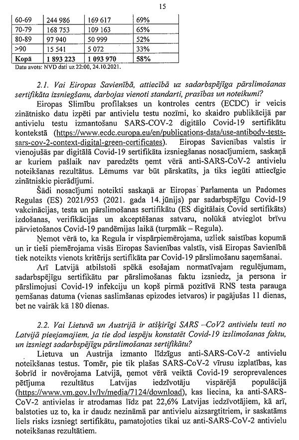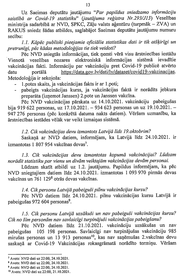 Kolēģi! Ne mēs Saeimā, ne mēs valstī... neesam pretinieki viens otram. Pandēmijā mums ir viens pretinieks, un tas ir šis šausmīgais vīruss, no kā var glābties vakcinējoties.
