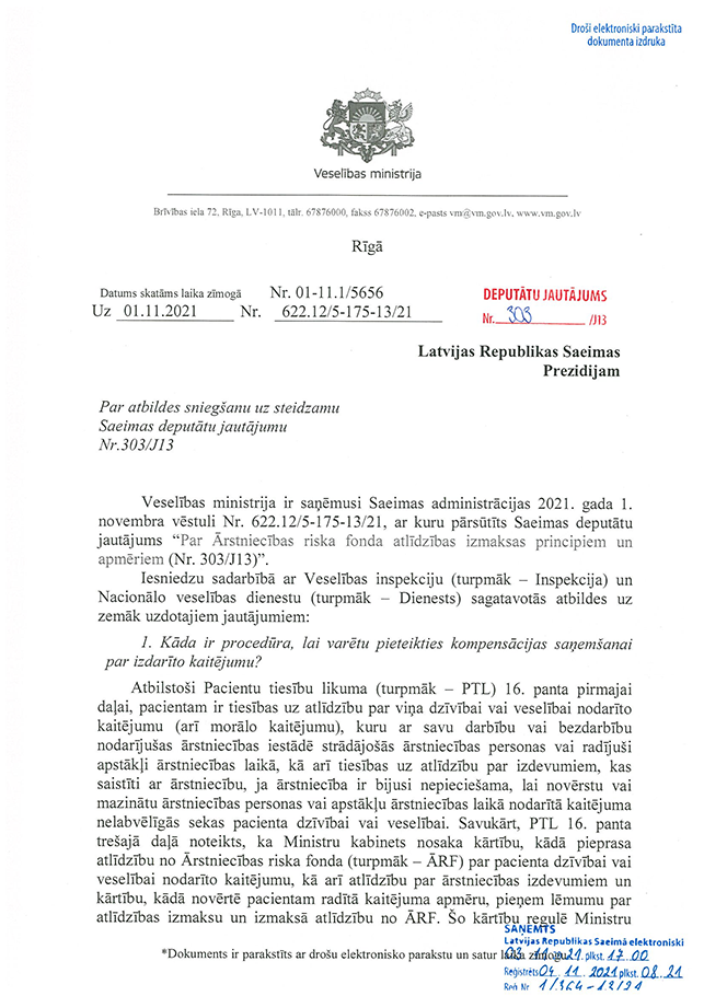 Skatot šos jautājumus komisijas sēdē, arī no Tiesībsarga biroja norādīja: kamēr valstī nav noteikta obligāta vakcinācija pilnīgi visām personām, šeit pastāv konstitucionālie riski, ar šādām pabalstu izmaksām dalot cilvēkus. Tas būtu apmēram tāpat, ja pie mums iedomātos slimības lapas paaugstinātā apmērā apmaksāt kādas citas tautības pārstāvjiem vai pēc politiskās vai reliģiskās piederības sākt šķirot.