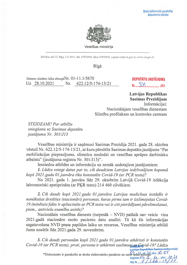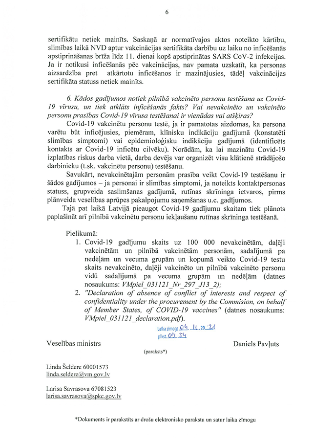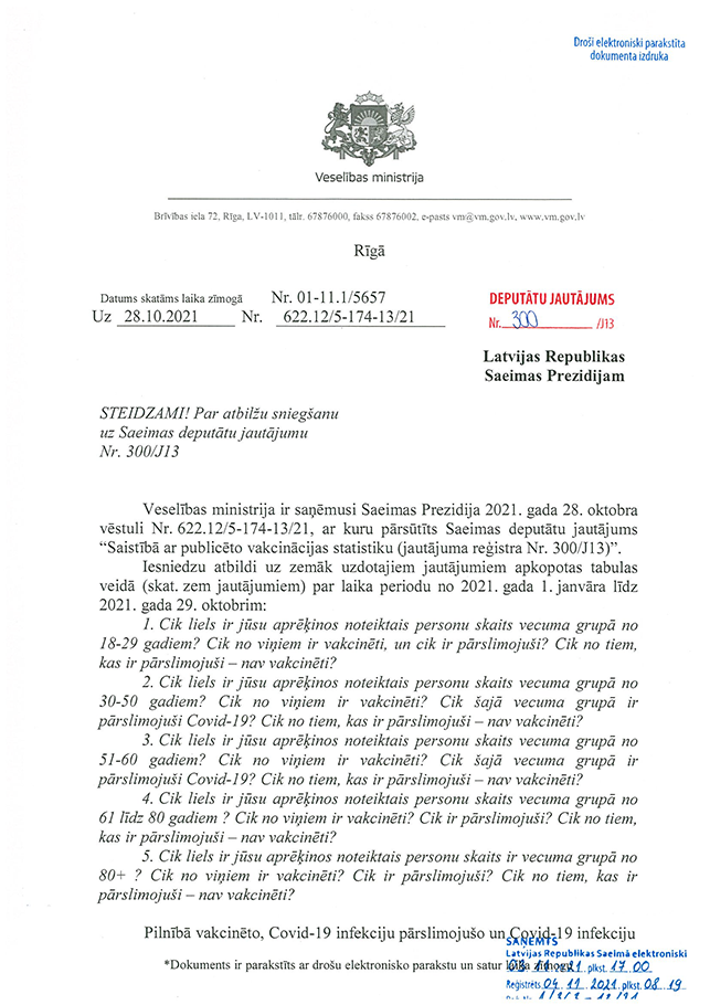 Tātad var secināt, ka valdība uzskata, ka vakcinētas personas ir tomēr bīstamākas sabiedrībai nekā nevakcinētas, un ka plāno tādā veidā ierobežot vīrusa izplatību. Vai arī – tomēr šiem likuma grozījumiem nav absolūti nekāda sakara ar infekcijas izplatības mazināšanu.