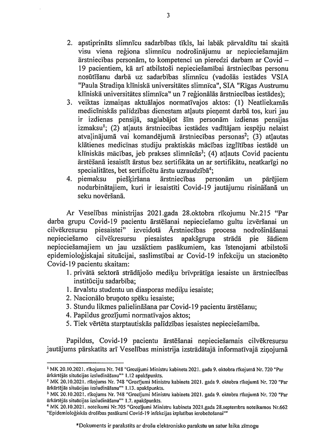 Anotācijā iekļautajā problēmu aprakstā ir minēts, kāpēc šādi grozījumi ir nepieciešami, un tur ir rakstīts: ņemot vērā saslimstības ar Covid-19 straujo pieaugumu, kā arī vakcinācijas gaitas norisi valstī, ir svarīgi ievērot epidemiologu norādījumus (ievērot distanci un tā tālāk).