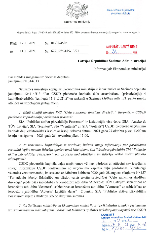 Abi deputātu jautājumi tiek nodoti atbildes sniegšanai.