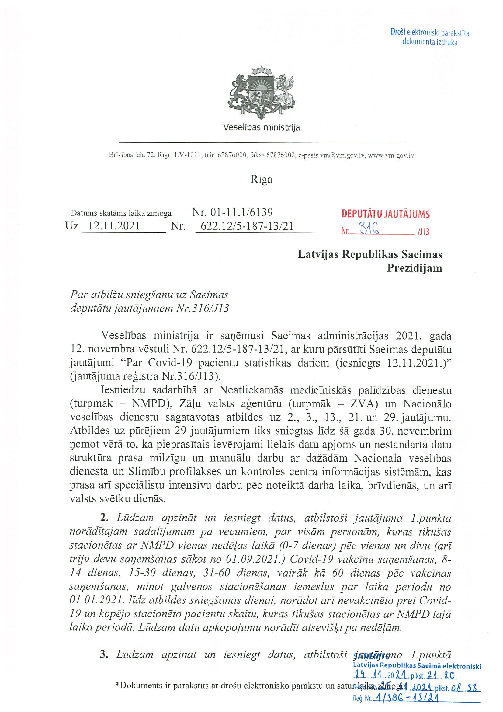 Latvijas Republikas 13. Saeimas rudens sesijas divdesmit ceturtās (attālinātās ārkārtas) sēdes turpinājums 2021. gada 16. novembrī