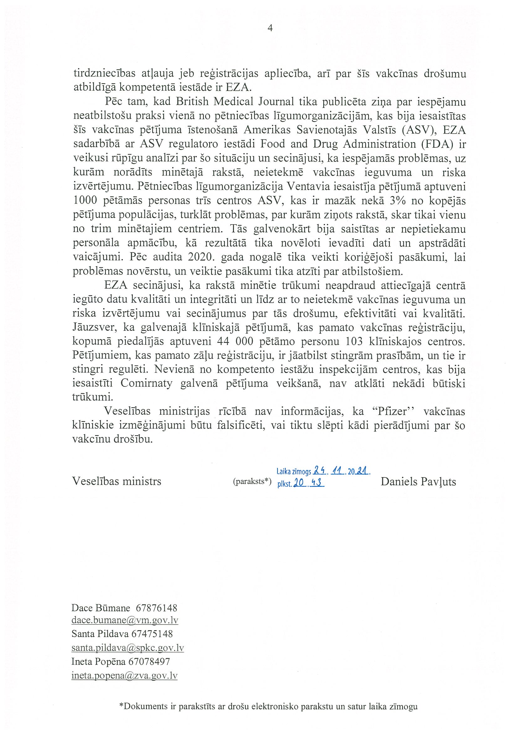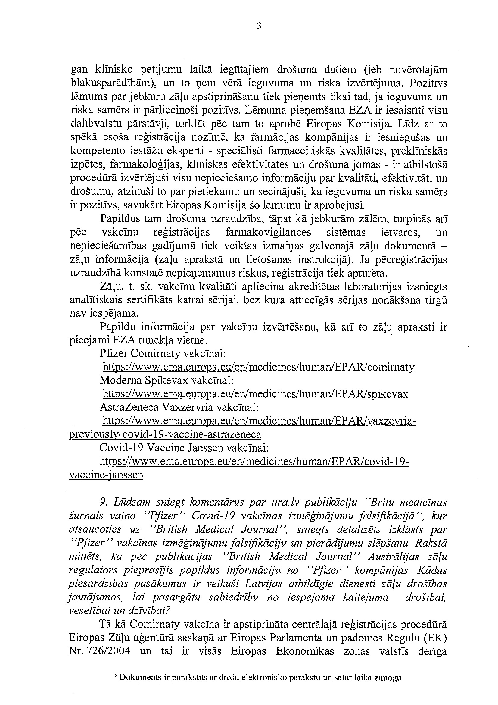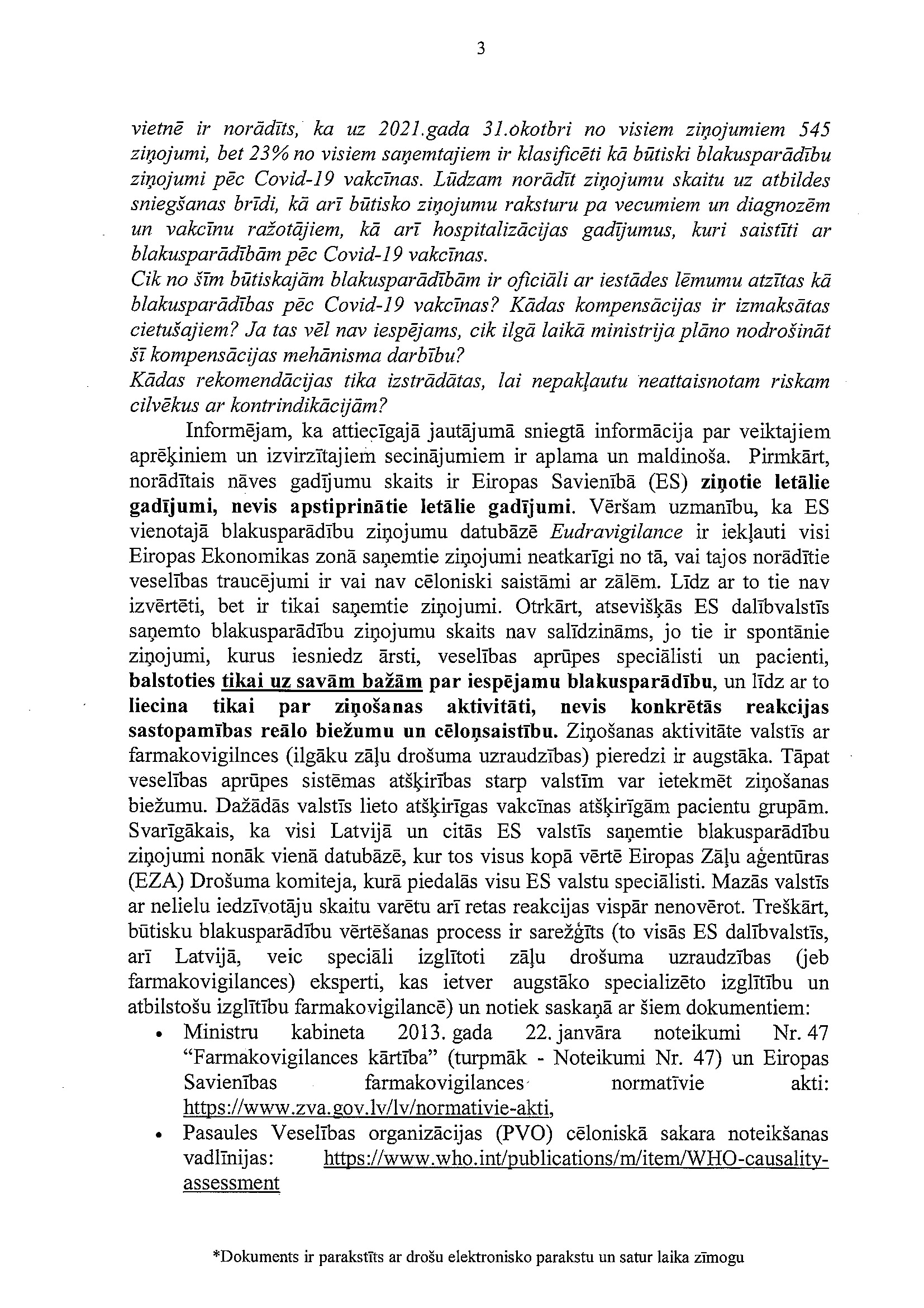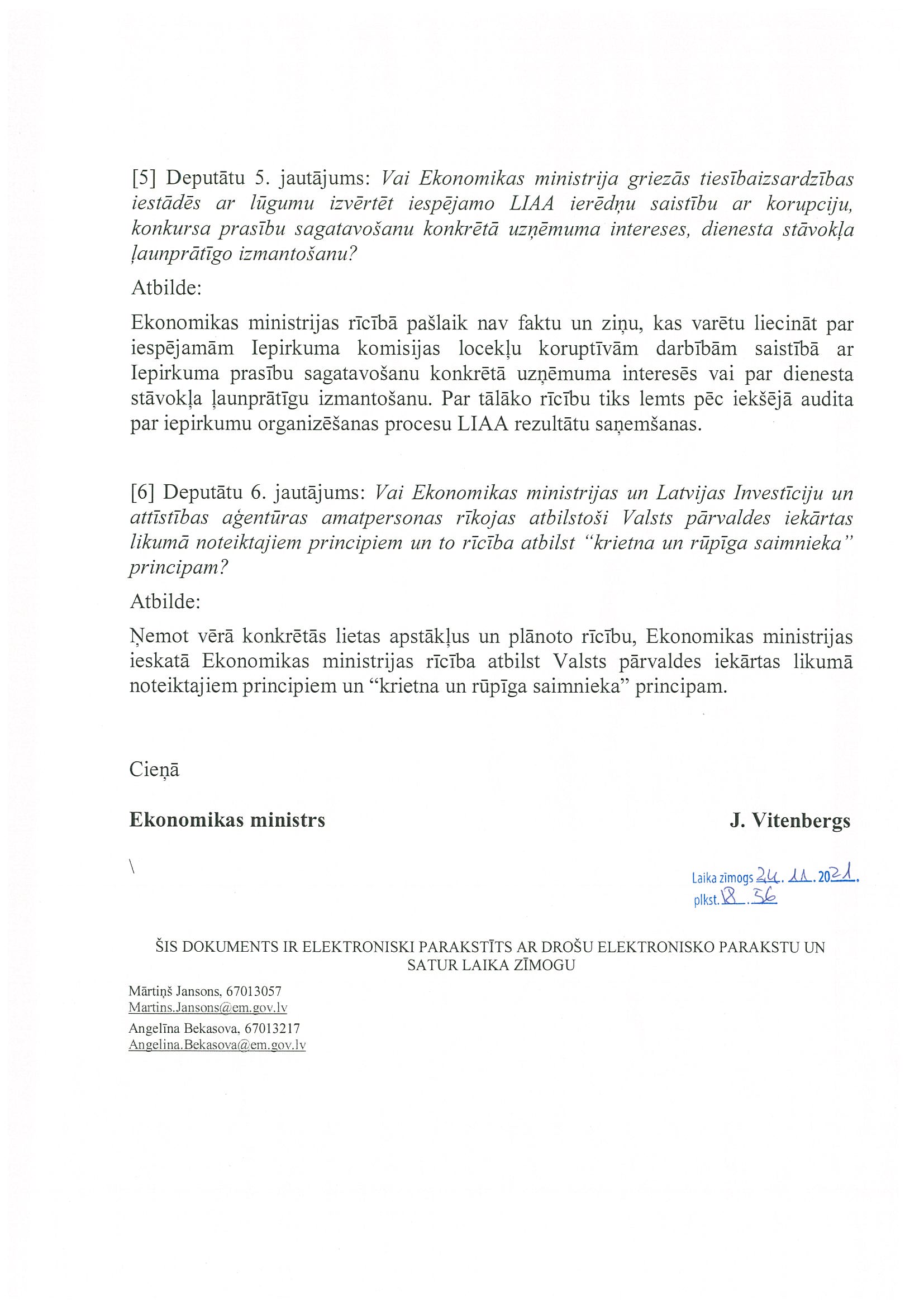 Līdz ar to acīmredzot šis Valsts prezidenta viedoklis, par kuru runāja Feldmana kungs, ir bijis izteikts kaut kā neoficiāli. Par oficiālo vēstuli man nekas nav zināms.