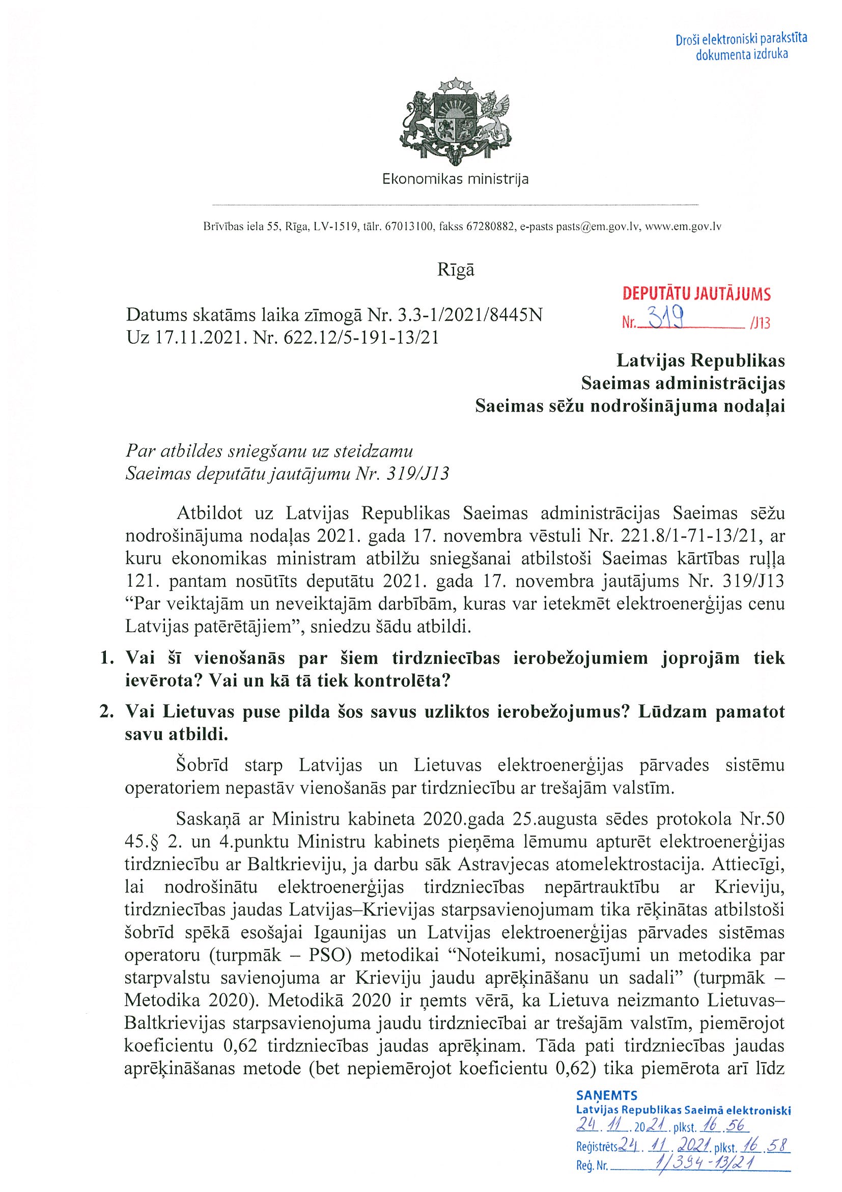 Rakstveidā sniegtās atbildes uz deputātu jautājumiem