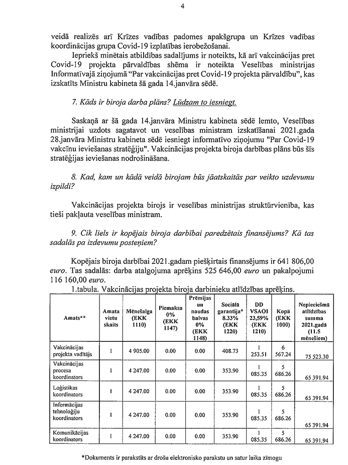 Diemžēl jau 2020. gada 8. aprīlī opozīcijas deputāti Publisko izdevumu un revīzijas komisijas laikā norādīja uz nepieciešamību veidot efektīvus sadarbības modeļus starp ministriju resoriem, nodrošināt kvalitatīvu un efektīvu darbu un proaktīvi reaģēt uz pandēmijas izaicinājumu. Opozīcijas deputāti savlaicīgi paredzēja nepieciešamību sagatavot attiecīgajās ministrijās savstarpējus informācijas apmaiņas kanālus un arī sadarbību, nodrošināt dezinfekcijas līdzekļu iegādi maznodrošināto, trūcīgo, cilvēku ar invaliditāti vajadzībām un mudināja Ministru prezidentu kopā ar atbildīgajām ministrijām veikt nepieciešamos sagatavošanas darbus.