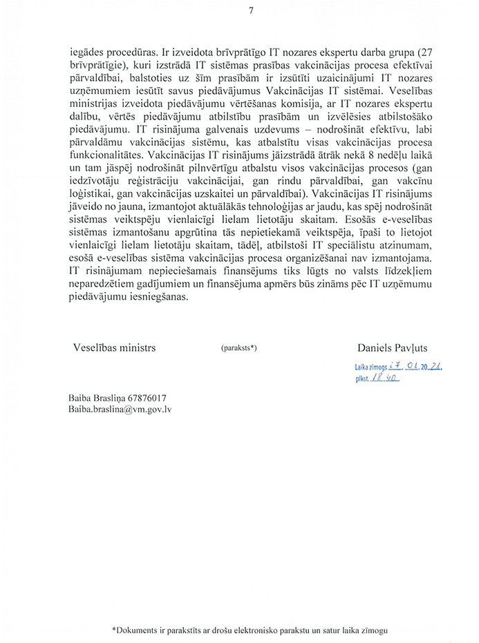 Komisijā, uzklausot ministriju pārstāvjus, iestādes, infektologus, tiesību ekspertus, valdības noteiktie grozījumi rīkojumā un izsludinātās ārkārtas situācijas pagarināšana līdz 2021. gada 7. februārim tika atzīti par pamatotiem, samērīgiem, konkrētajā situācijā nepieciešamiem, tāpēc aicinu atbalstīt komisijas sagatavoto lēmuma projektu.
