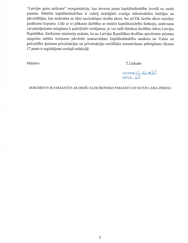 Ja mēs runājam par gāzes tirgu, tad šogad ziemā Latvijai... kāpēc ir atšķirīga situācija? Tāpēc, ka pirms gadiem trim man izdevās pārliecināt Ekonomikas ministriju pamainīt šo gāzes tirgus modeli attiecībā uz Inčukalnu, paredzot, ka Inčukalns būs nevis vienkārši tirgus placis spekulantiem, pierādot, ka var būt situācija, kurā šie spekulanti... vienkārši šis brīvais tirgus, liberālais tirgus, var nenodrošināt vajadzīgos gāzes apjomus Latvijai. Un šogad Latvija nenosals, tikai pateicoties tam, ka ir šī rezerve paredzēta, šīs trīs teravatstundas, kuras tika ierakstītas Ministru kabineta noteikumos, pirms tam Ekonomikas ministrijai bravūrīgi paziņojot: nu, ja būs tāda situācija, būs ārkārtas situācija, – gāze būs tikai aizsargātajiem lietotājiem, pārējiem visiem – tās ir viņu problēmas. Reāli tāds gāzes tirgus modelis bija izstrādāts Latvijai.