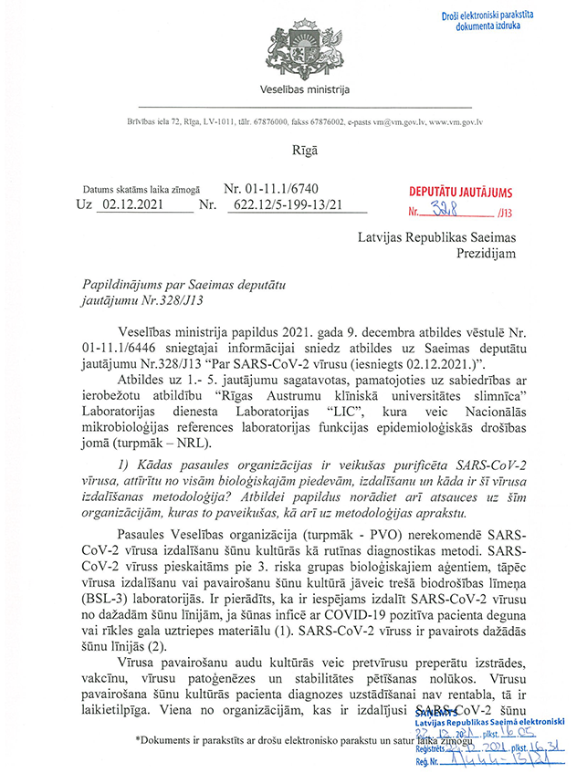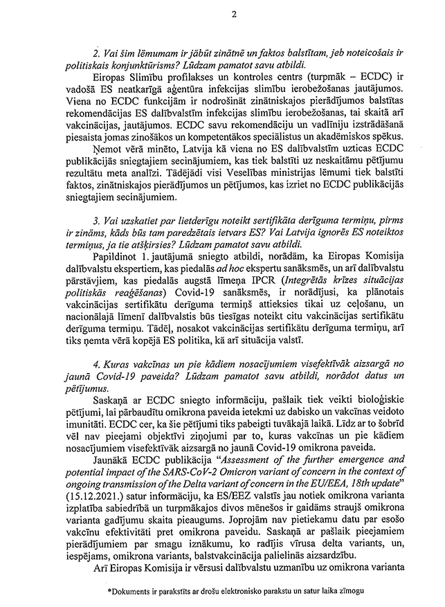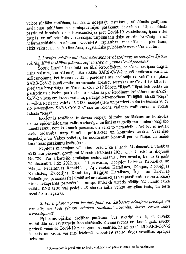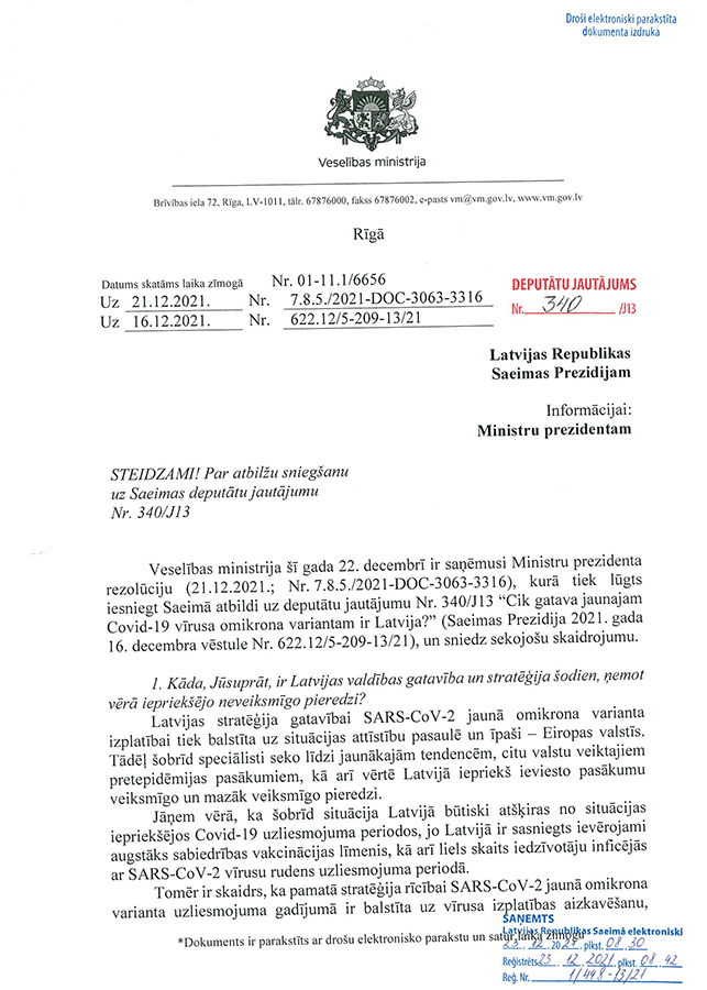 Deputāti Ivars Zariņš, Artūrs Rubiks, Ivans Klementjevs, Vladimirs Nikonovs un Jānis Tutins ir iesnieguši jautājumu Ministru prezidentam Kariņam "Par valdības sēdē pausto prognožu pamatotību saistībā ar sagaidāmo Covid-19 saslimstību". Šo deputātu jautājumu nodosim Ministru prezidentam.