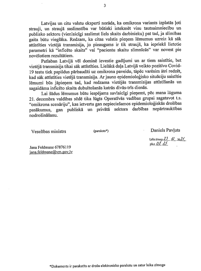 Sēdes vadītāja. Labdien, godātie kolēģi! Turpinām darbu. Izskatām Saeimas 2021. gada 22. decembra trešās attālinātās ārkārtas sēdes darba kārtību.