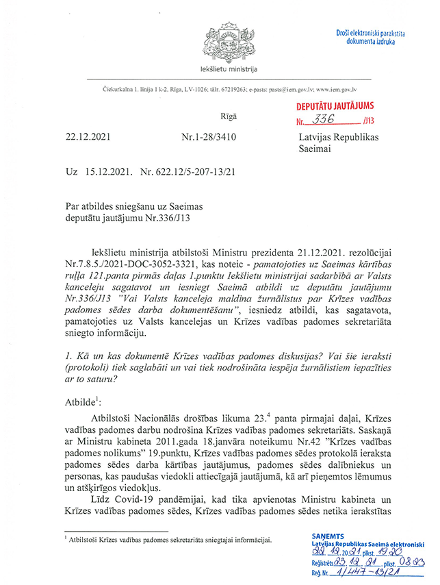 Proti, šeit, Saeimā, parlamentārās izmeklēšanas... Covid-19... izmeklēšanas komisijā citstarp mēs runājām par atbalsta instrumentiem, atbalsta mehānismiem, un šo jautājumu... tas bija vēl rudenī... šo jautājumu es uzdevu Reira kungam rudenī – budžeta pieņemšanas procesa laikā. Vēl tad, kad budžeta projekts tika skatīts Saeimā un notika vēl priekšlikumu izskatīšana komisijās, Reira kungam šo jautājumu es uzdevu, un Reira kungs man gari un plaši atbildēja par to, kāpēc tas nav vajadzīgs... šāds jautājums ir, viņa ieskatā, jau labi sakārtots... un kāpēc nav jāsniedz nekāds mājokļa pabalsts... ka pašvaldībām jau viss esot kārtībā un ka pabalsts ir, labi, ap 2023. gadu.