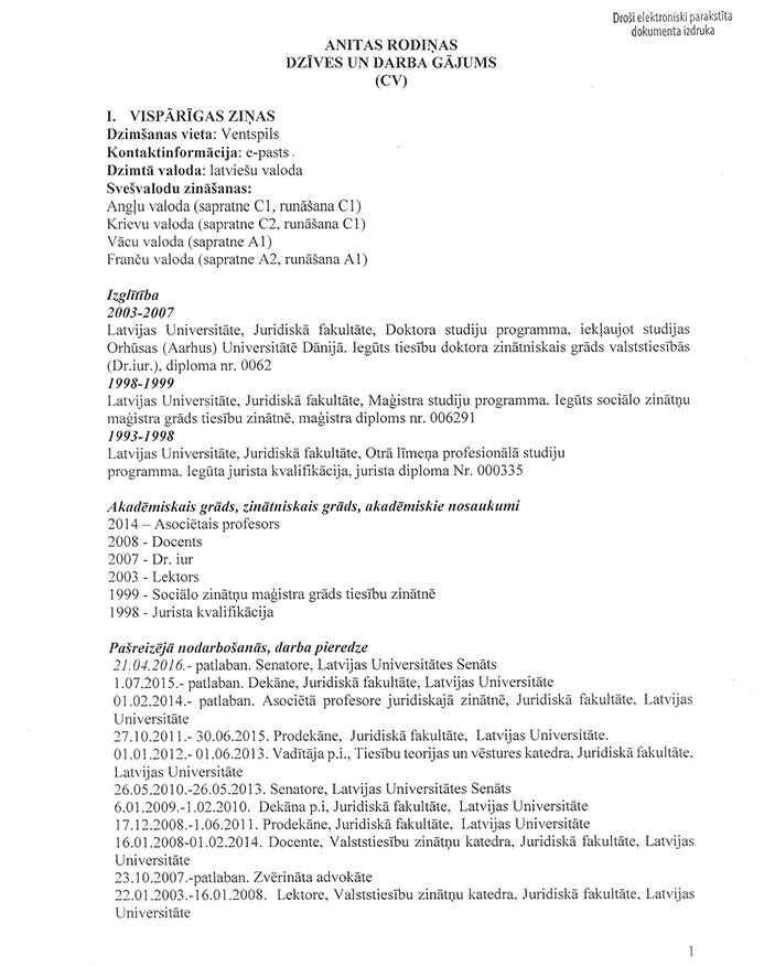Deputāti Inese Lībiņa-Egnere, Inese Voika, Marija Golubeva, Andris Skride, Vita Anda Tērauda, Ainars Latkovskis, Juris Pūce, Atis Zakatistovs, Anda Čakša un Andrejs Judins izvirzījuši Anitas Rodiņas kandidatūru (pielikumā ziņas par izvirzīto kandidatūru).