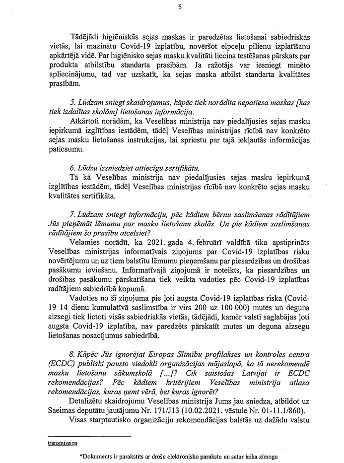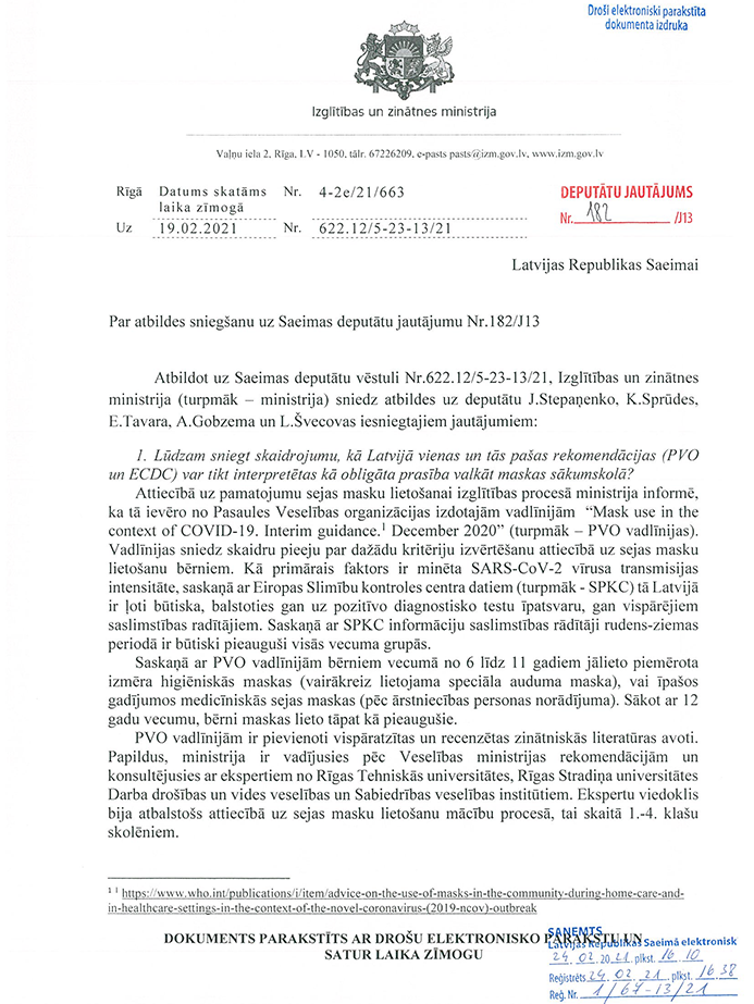 Rakstveidā sniegtās atbildes uz deputātu jautājumiem