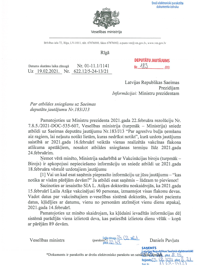 Latvijas Republikas 13. Saeimas ziemas sesijas divdesmit pirmā (attālinātā ārkārtas) sēde 2021. gada 23. februārī