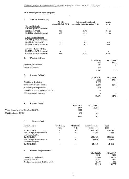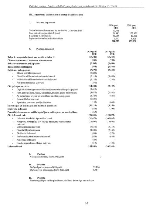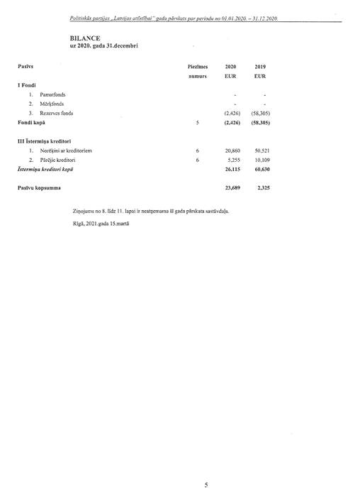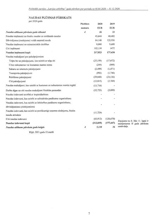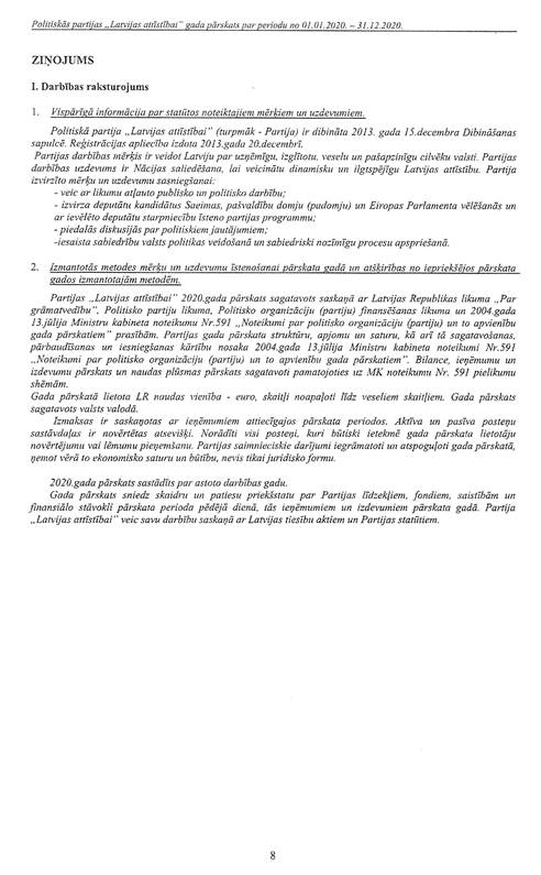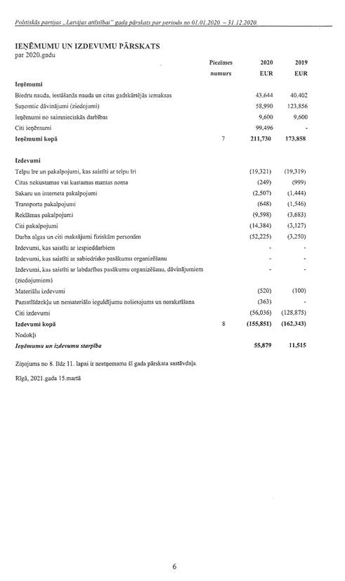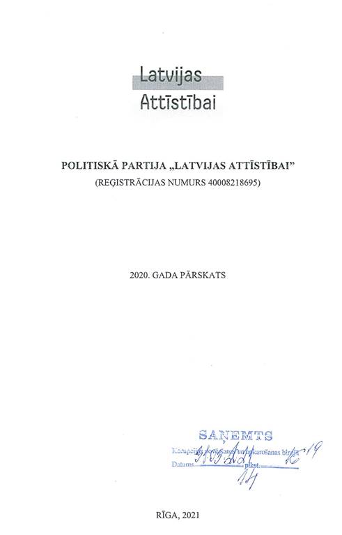 Politiskās partijas "Latvijas attīstībai", reģ. Nr. 40008218695, gada pārskats par 2020.gadu