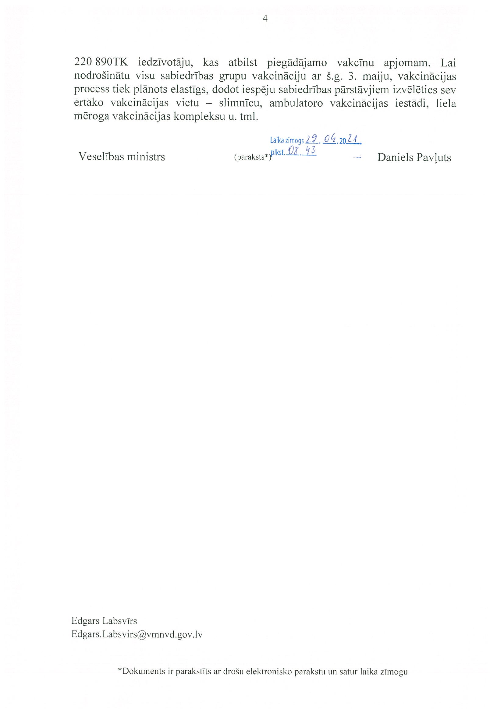 Zinot, ka šis fakts ir kļuvis zināms sabiedrībai, Veselības ministrija, līdzīgi kā ar "Pfizer" vakcīnām, uzreiz pieteicās taisīt pati dienesta pārbaudi par šo faktu. Taču mēs zinām, kā Veselības ministrijai sokas ar šīm pārbaudēm, – jau no iepriekšējā pieprasījuma, jo, kad mēs runājām par šīm vakcīnām, uzskatāmi ar faktiem varēja pierādīt, ka patiesībā Veselības ministrija šo savu dienesta pārbaudi, izmeklēšanu bija veikusi ne jau tādēļ, lai kaut ko atklātu, bet gan tādēļ, lai noslēptu, lai pacenstos uzburt sev izdevīgu realitāti, pie kuras nu gandrīz neviens ne par ko īsti nav vainīgs. Tātad visi kaut kur ir vainīgi, visi kaut kur ir piedalījušies, bet, lai varētu kādu padarīt par noteiktu un pateikt, kurš tad īsti ir bijis tas atbildīgais, neviens neatradās. Atradās no sākuma grēkāzis Lācbergs, kurš tika izstumts priekšā, bet mēs atmaskojām, ka patiesībā tā bija tiešām vienkārši grēkāža meklēšana. Patiesībā uz šā cilvēka pleciem nevarēja uzlikt visu atbildību par notikušo.
