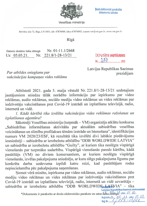 Latvijas Republikas 13. Saeimas pavasara sesijas sešpadsmitās (attālinātās ārkārtas) sēdes turpinājums 2021. gada 13. maijā