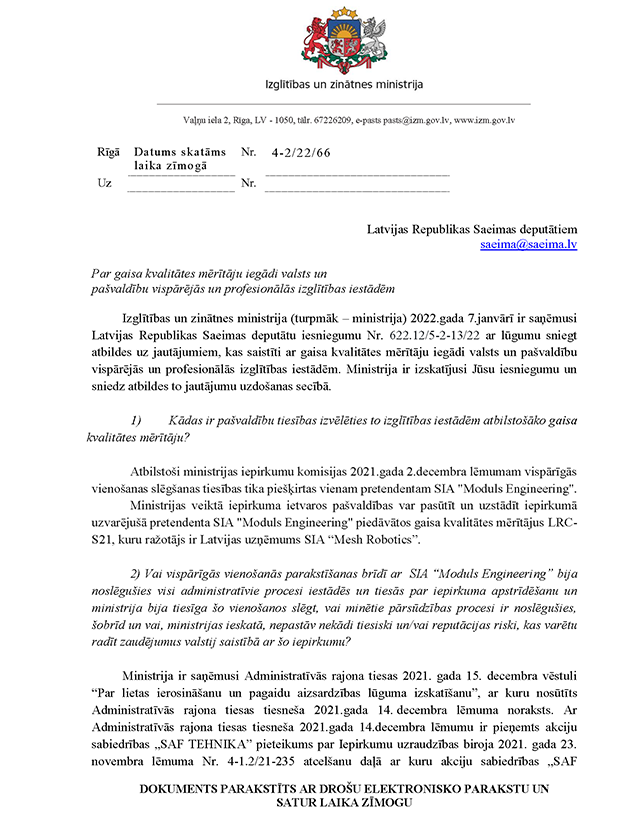 Sēdes vadītāja. Cienījamās deputātes! Godātie deputāti! Sākam Latvijas Republikas Saeimas 2022. gada 13. janvāra trešās attālinātās ārkārtas sēdes darba kārtības izskatīšanu.