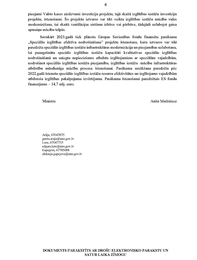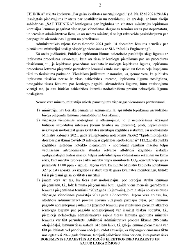 Sēdes vadītāja. Tātad citi priekšlikumi Prezidijā nav saņemti, līdz ar to priekšlikumu iesniegšanas termiņš likumprojektam uz otro lasījumu ir šā gada 17. janvāris pulksten 17.00, un izskatīšana – 20. janvāra Saeimas sēdē.
