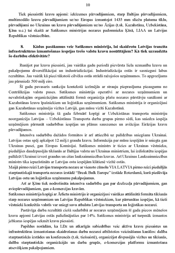 Dāmas un kungi! Tieši baltieši un poļi pēc Krievijas iebrukuma Ukrainā visapņēmīgāk atbalsta Ukrainu. Mūsu izpratne par Krievijas bīstamību, ko partneri Rietumeiropā daudzu gadu garumā ignorēja, gan mūsu pozīcija sankciju jautājumā, gan mūsu militārais atbalsts Ukrainai ir nozīmīgi ietekmējis Eiropas Savienības kopējo nostāju. To atzīst arī starptautiskie novērotāji. Latvijas ārpolitiskais svars nākamajos četros gados ir jāsaglabā, jo tas kalpo mūsu drošībai.