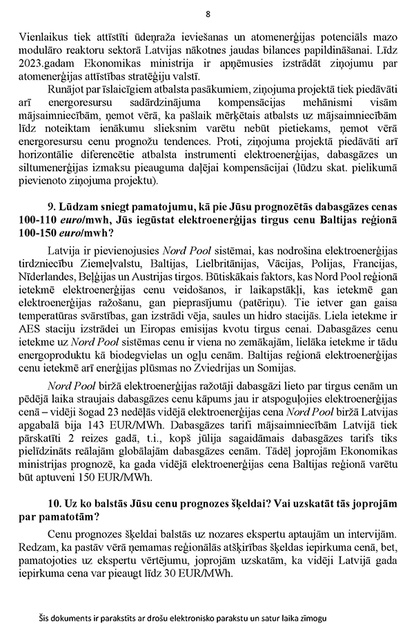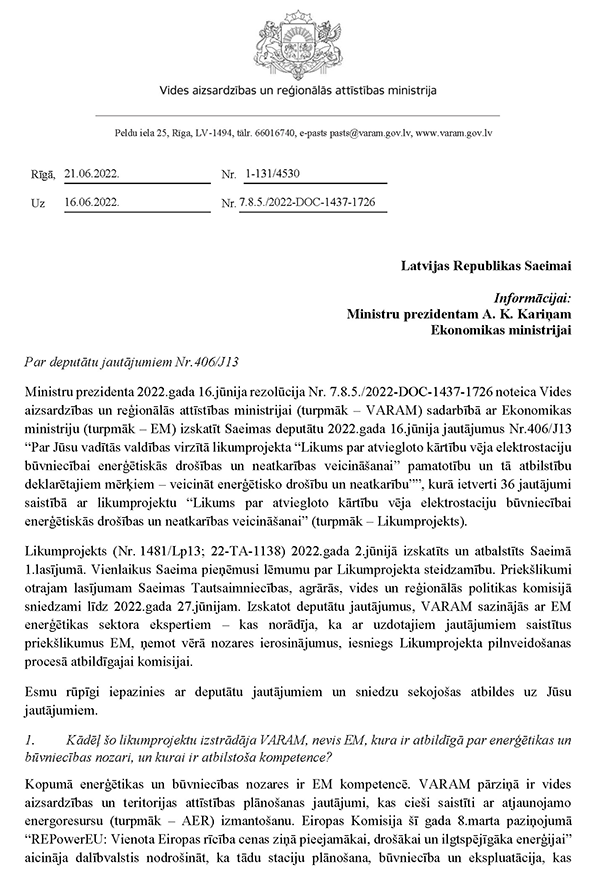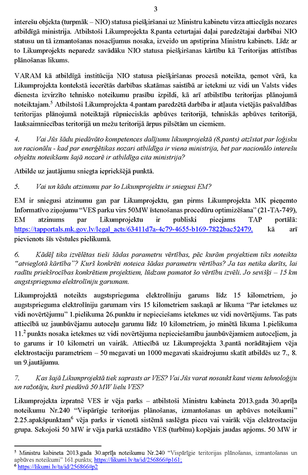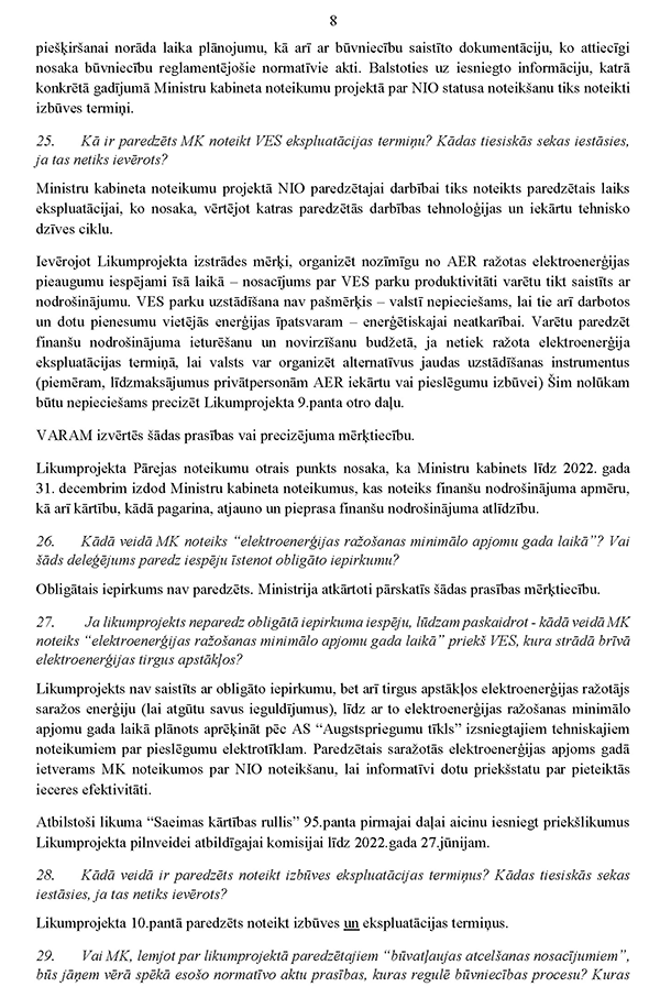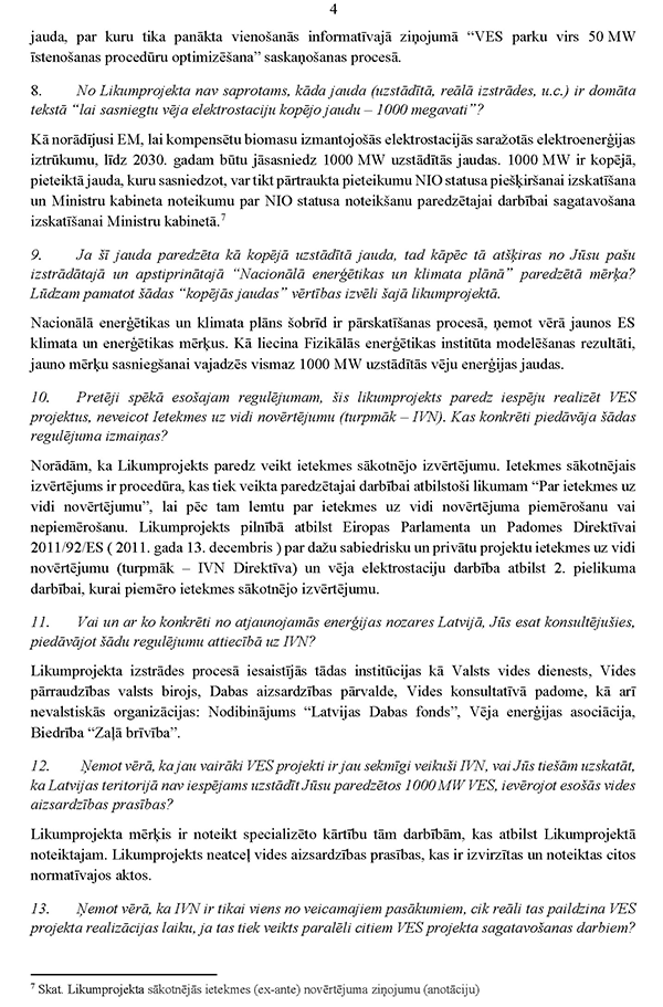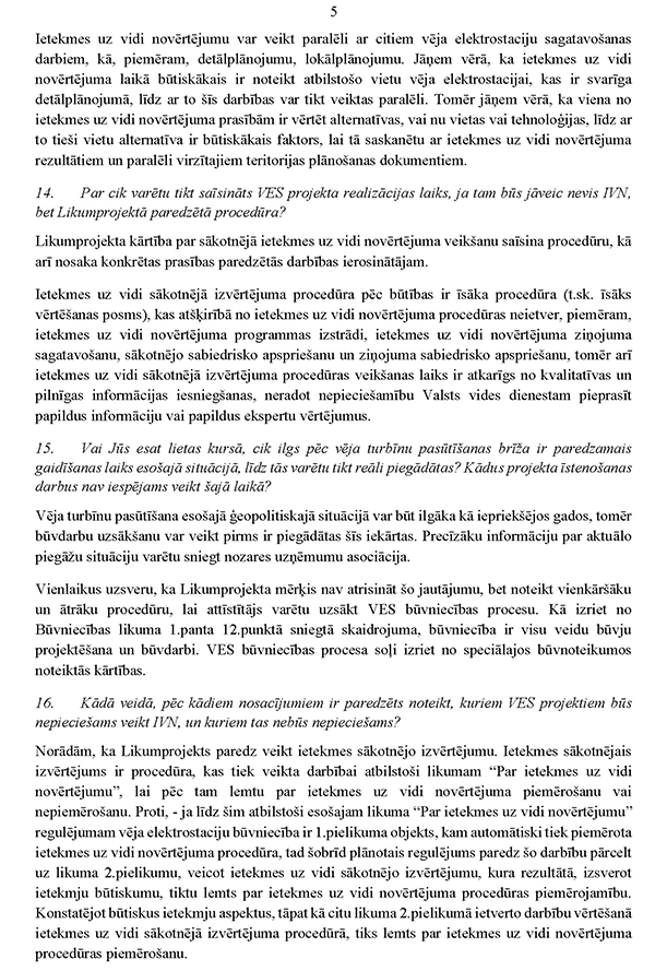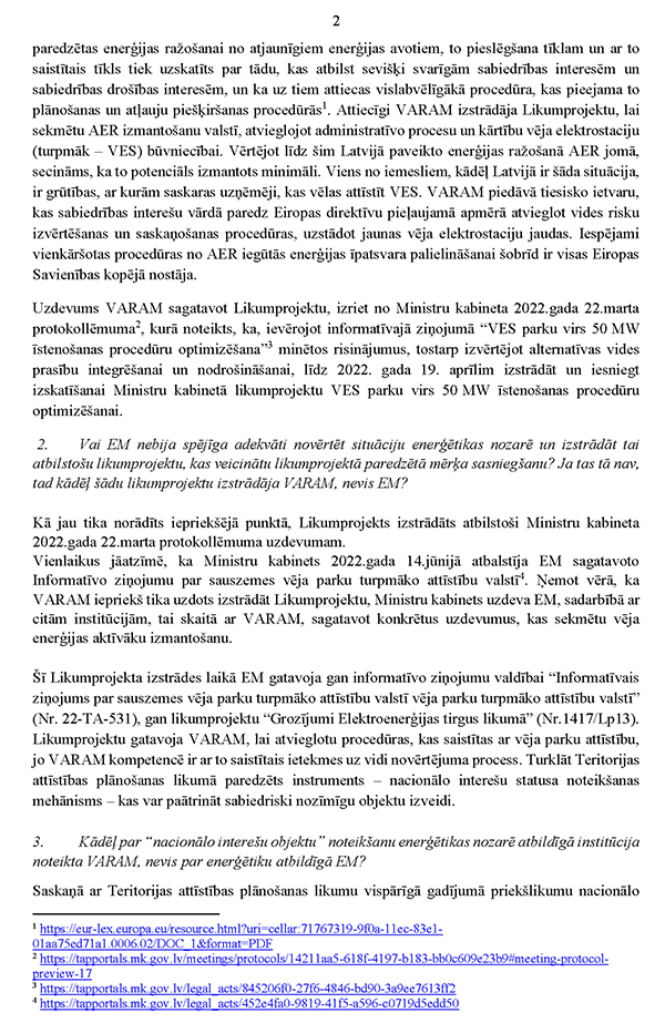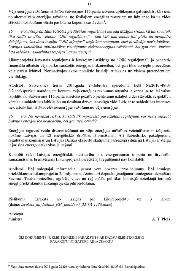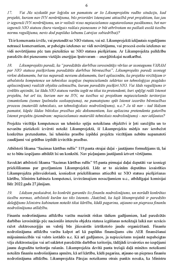 Šie iepriekšējie lēmumi jeb, precīzāk, lēmumu nepieņemšana tagad mūsu enerģētikas krīzi padara vēl smagāku. Tāpēc, piemēram, nav pieļaujams, ka vēja parku investoriem jāmaldās birokrātiskos labirintos, jācīnās ar administratīviem šķēršļiem, pat jātiesājas, lai varētu ražot mums tik nepieciešamo enerģiju.