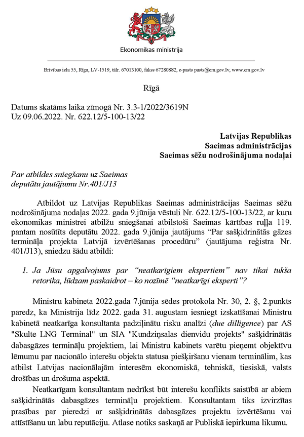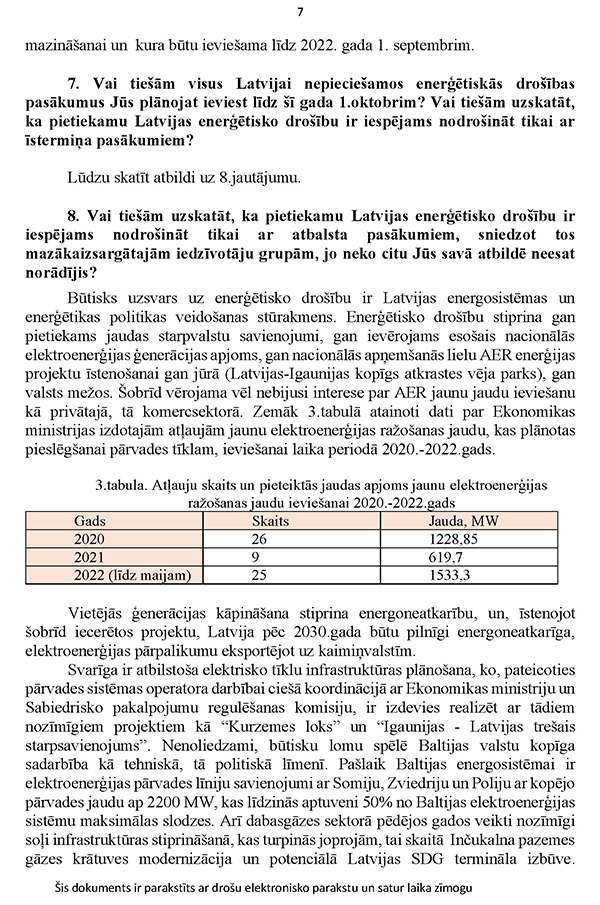 Godātie deputāti! Arī Latvijas enerģētiskā pietiekamība ir drošības jautājums.