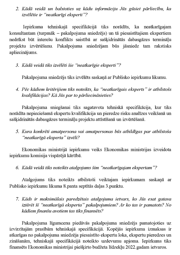 Tāpat ir jābūt politiski atbildīgai amatpersonai par Latvijas zaļo kursu un attiecīgajām reformām tautsaimniecībā, jo tie visi ir pārinstitucionālu un pārnozaru jautājumi.